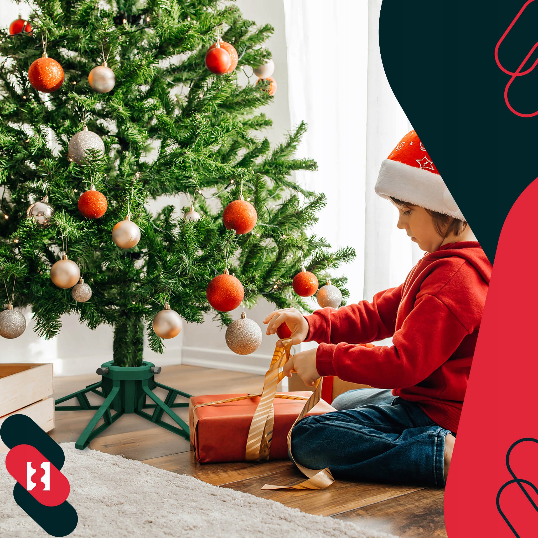 Подставка для елки была разработана с учетом максимального комфорта пользователя. Ее широкое основание и точная система крепления позволяют быстро и безопасно установить елку без риска опрокидывания. Благодаря продуманной конструкции елка сохраняет вертикальное положение даже после украшения, что гарантирует эстетический и гармоничный визуальный эффект.