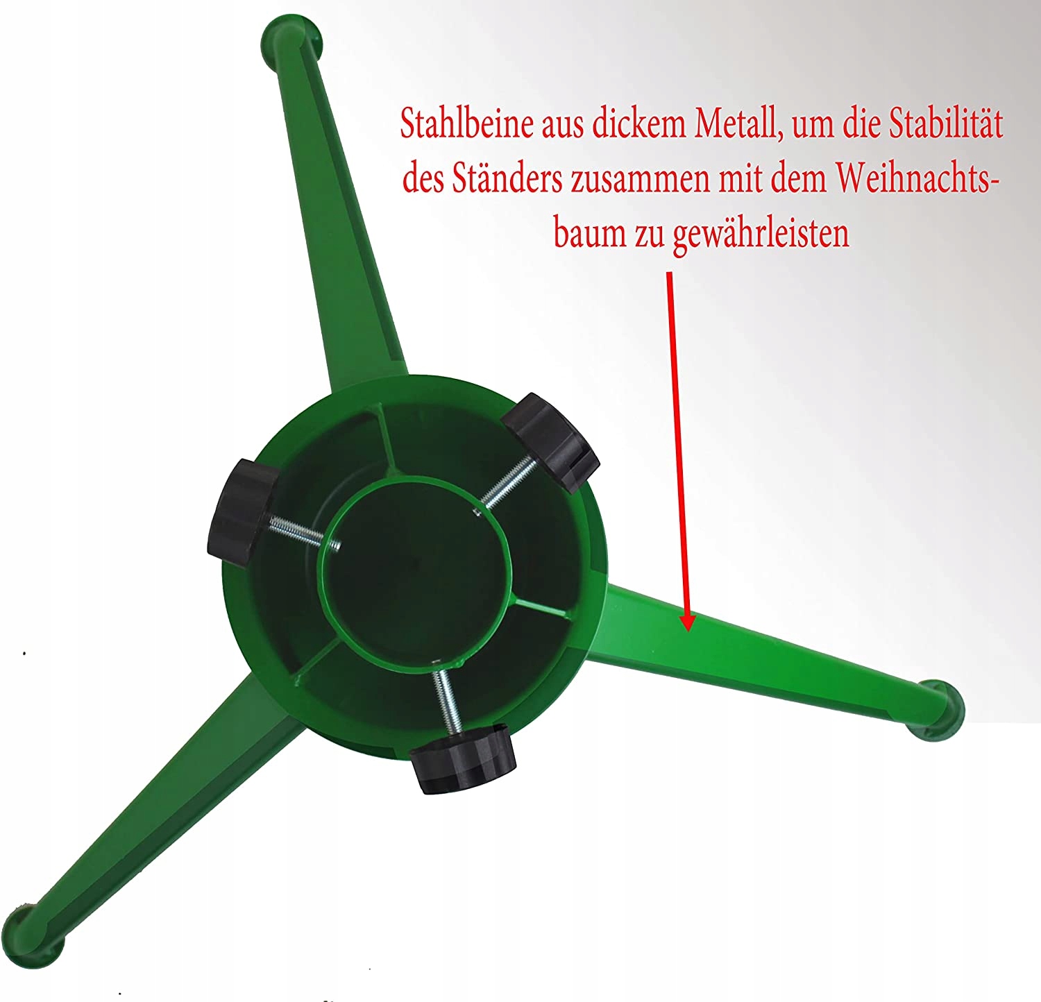 - Оснащен стальным штифтом для вкручивания в корень и металлическими шурупами, обеспечивающими хорошую фиксацию и устойчивость елки.