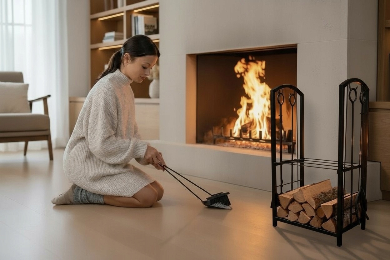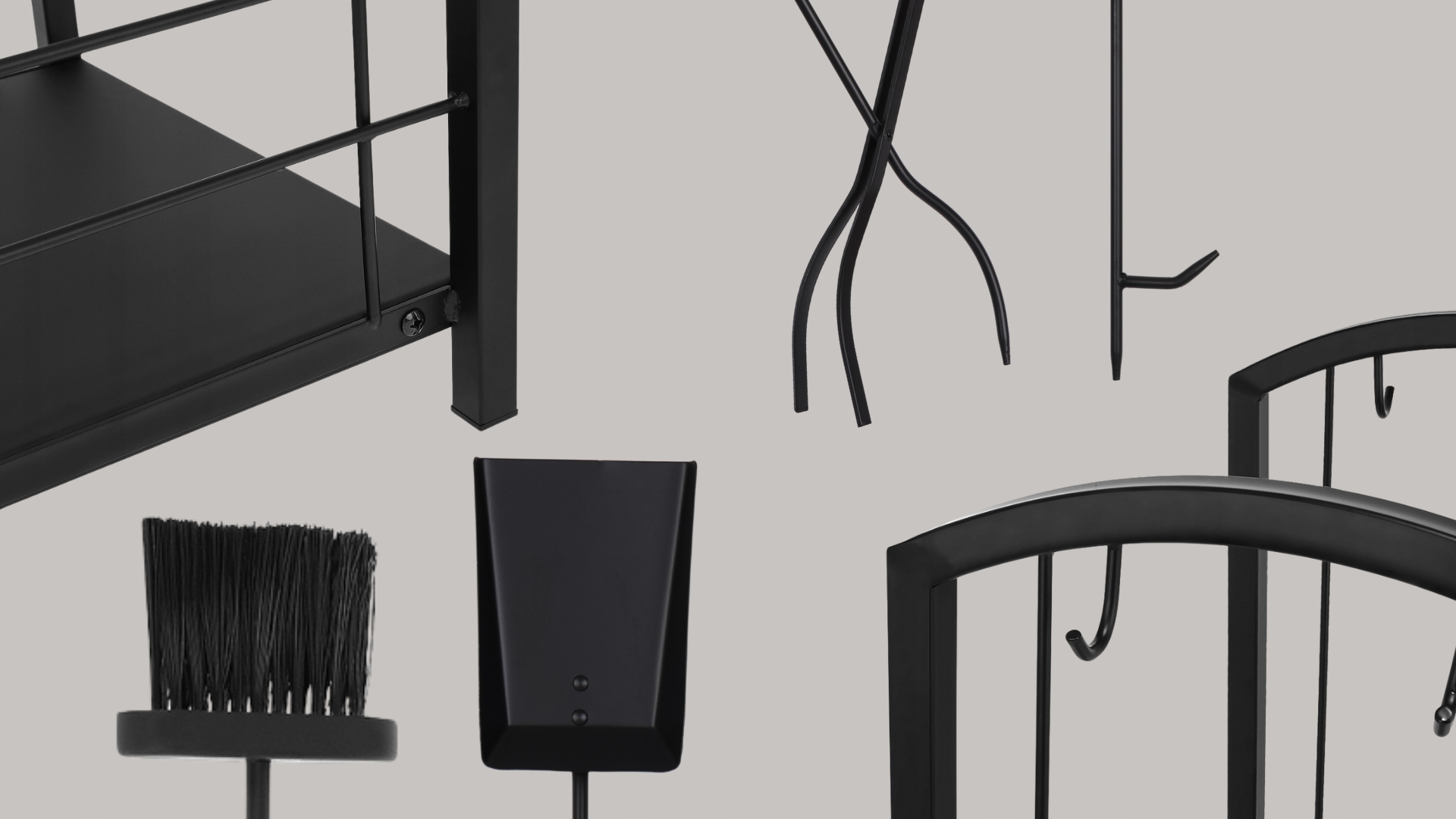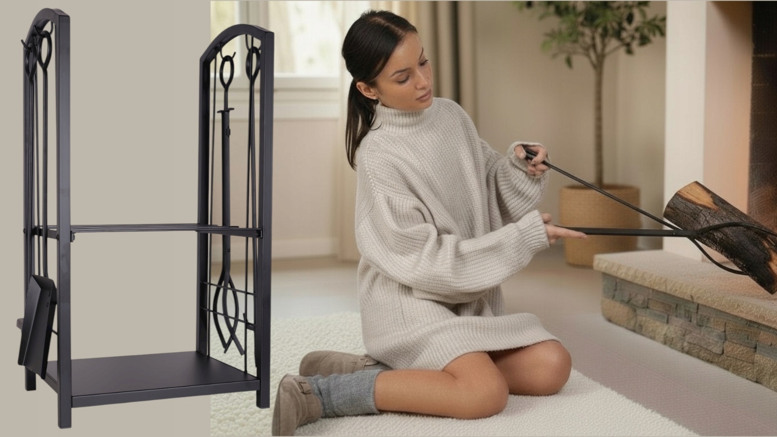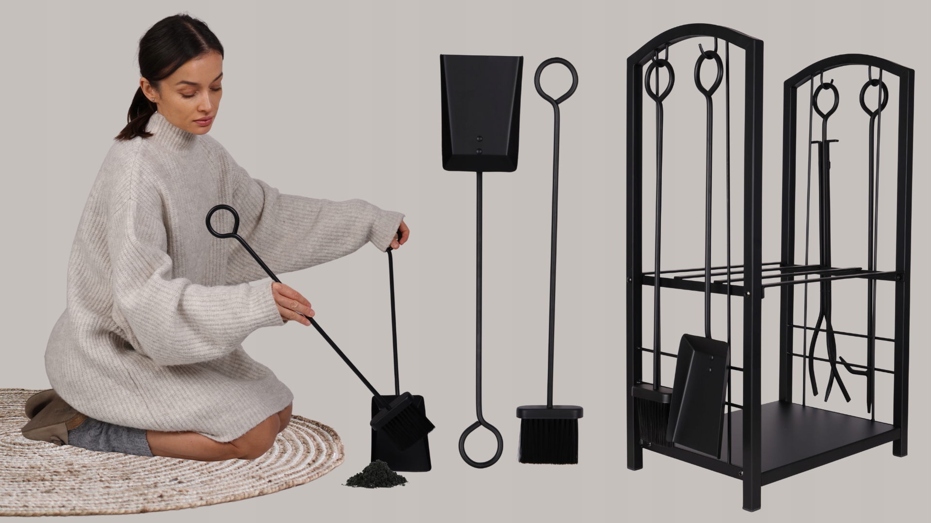 - Полный набор 5-в-1: все необходимые инструменты в одном месте. Щипцы, лопата, веник, кочерга и полки обеспечивают полноценную работу камина. Выполняет функцию деревянной подставки с двумя функциональными полками, облегчая хранение и организацию.