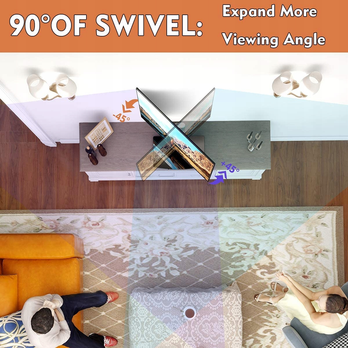 - УНИВЕРСАЛЬНАЯ ПОВОРОТНАЯ ПОДСТАВКА ДЛЯ ТВ☞ Развернуть просмотр углы в вашем пространстве, поворачивая телевизор влево до 45 градусов и вправо до 45 градусов, чтобы отрегулировать высоту, на которой находится телевизор. Независимо от того, на каком сиденье вы находитесь, у вас будет лучший ракурс для съемки всех ваших фотографий.