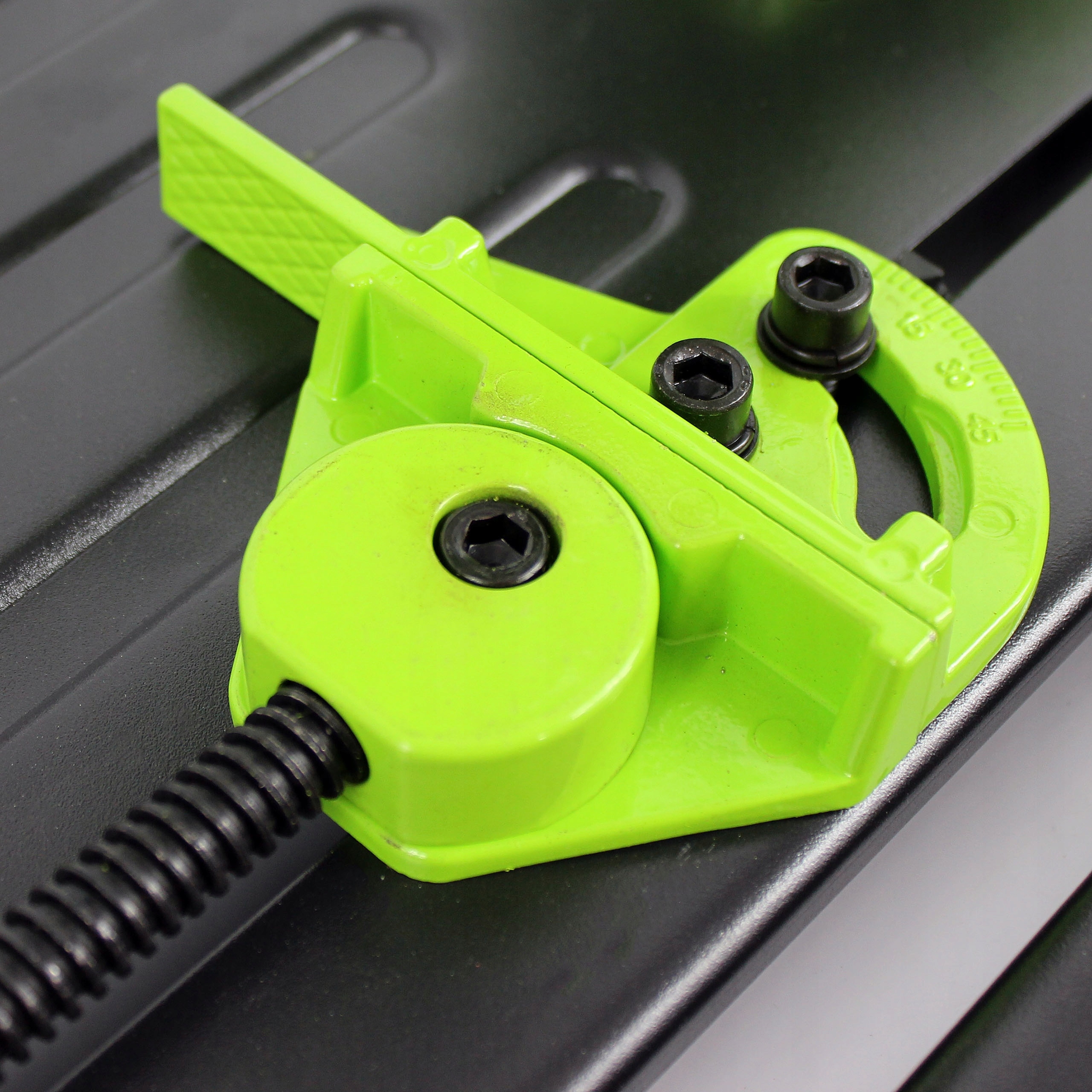 Регулируемые прижимы надежно удерживают обрабатываемый материал под регулируемым углом 0-45 градусов к плоскости реза.