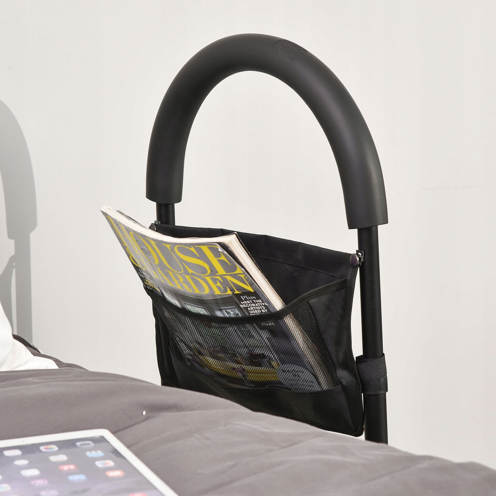 Помощник для стояния обеспечивает взрослым или людям с ограниченными возможностями стабильную и безопасную опору, позволяющую свободно садиться в автомобиль и выходить из него. Металлическая конструкция покрыта мягкой пеной, благодаря чему ручку удобно и безопасно держать. Благодаря гуманному дизайну ручка не будет слишком ледяной или горячей при изменении температуры. Ваши руки хорошо защищены. Помощник для стояния предлагает 7-уровневую систему регулировки высоты, которая подходит для всех типов кроватей, таких как двуспальная, двуспальная, двуспальная, двуспальная и может работать с обеих сторон кровати. Нейлоновая сумка для хранения нашей специальной конструкции идеально подходит для хранения личных вещей, таких как книги, ручки, бутылки с водой и т. д. Как можно гарантировать стабильность? Прикроватный держатель оснащен наматрасником из черного полиэстера, горизонтальными стабилизаторами и ножками с нескользящим ковриком для максимальной устойчивости.