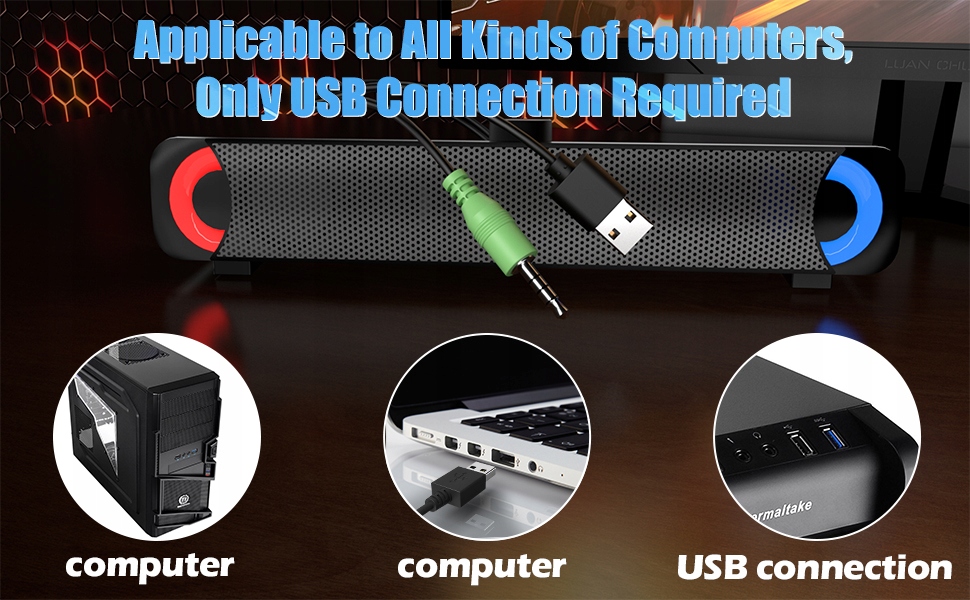 - ♪【 Подключи и воспроизведение】 простой тип ввода и игра, 3,5 мм Aux, двойной аудио режим; Громкость регулируется как с использованием динамика, так и компьютерного контроллера