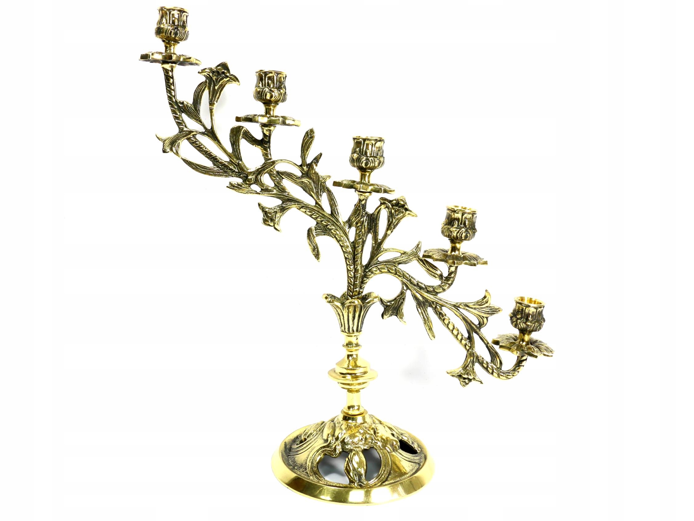 Элегантное и вневременное дополнение к интерьеру. Красиво оформленный латунный подсвечник. Подсвечник на пять свечей. Изготовлен польским производителем. Полностью латунное литье.