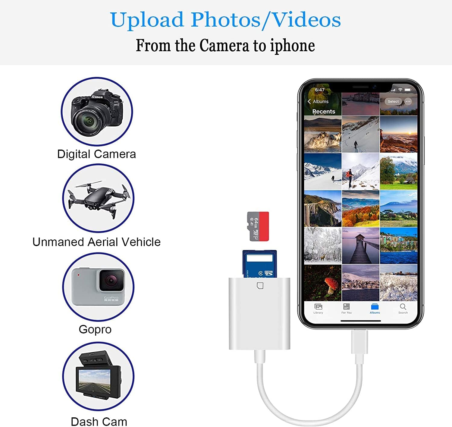Обновленная версия: этот адаптер SD-карт для iPhone поддерживает SD-карты цифровых камер, спортивных камер, дронов и охотничьих камер. Позволяет легко загружать фотографии или видео с SD-карт прямо на iPhone или iPad и делиться фотографиями и видео в социальных сетях в любое время и в любом месте.