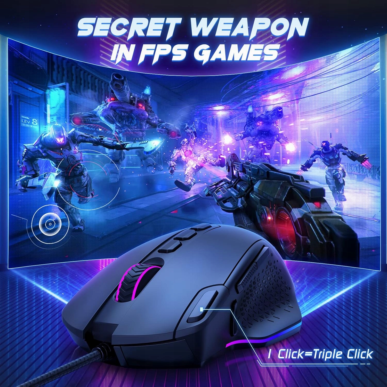 6 Регулируемые уровни DPI (1200/2400/3500/5500/7200/12000) и 4 частота отталкивания (125/250/500/1000HZ). выбор. Построенный из усовершенствованного датчика PMW3327, эта компьютерная мышь максимизирует точность и реакцию игры и не потеряет путь на любом уровне DPI. и регулировка, эта мышь RGB с регулируемым освещением дает больше возможностей. Освещение также может быть выключено, нажав кнопку Light в течение 3 с