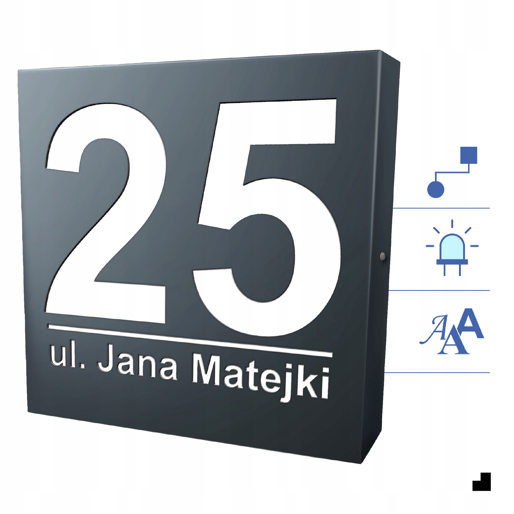 ПІДСВІТЛЮВАННЯ НОМЕРНОЇ ТАБЛИЧКИ АДРЕСИ LED 30X30 см АНТРАЦИТОВИЙ RAL7016