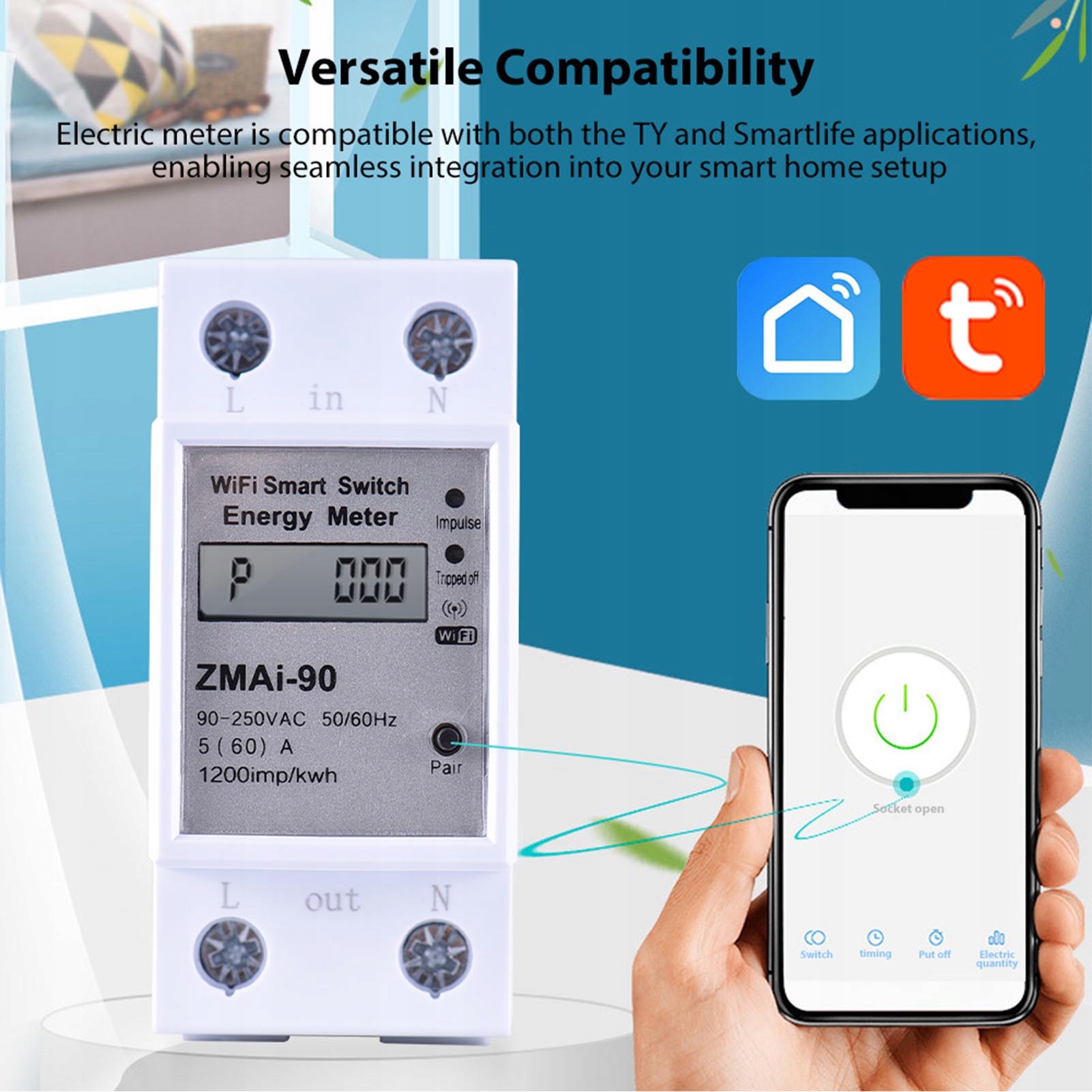 2. Универсальная совместимость: этот счетчик электроэнергии совместим с приложениями TY и Smartlife, что позволяет легко интегрировать его в настройку вашего умного дома. Также работает с Alexa и Google Home для голосового управления.
