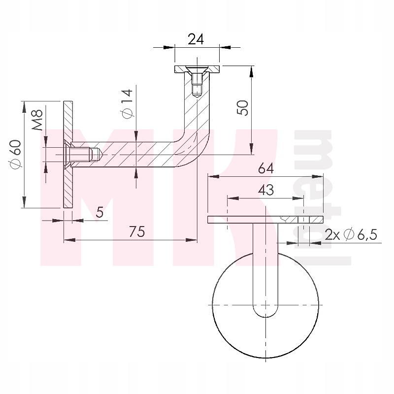 - установка: кронштейн привинчен к стальному анкеру М8, встроенному в стену