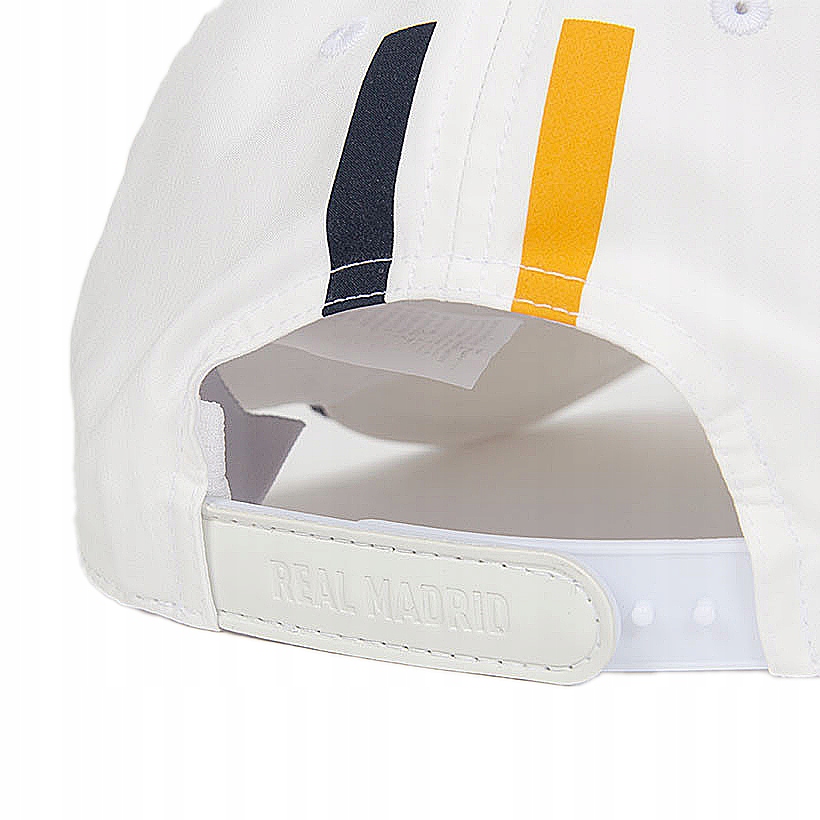 Реал Мадрид ФК Шляпа в белом. впереди вышитая красочная клубная эмблема . черный лем вокруг кончика с буквами. качественный полиэфирный материал гарантирует удобство и долговечность. Регулируемый размер в диапазоне 56-61 см позволяет идеально подходить. закрытие пластиковым зажимом и ремнем с логотипом клуба обеспечивает легкую регулировку.