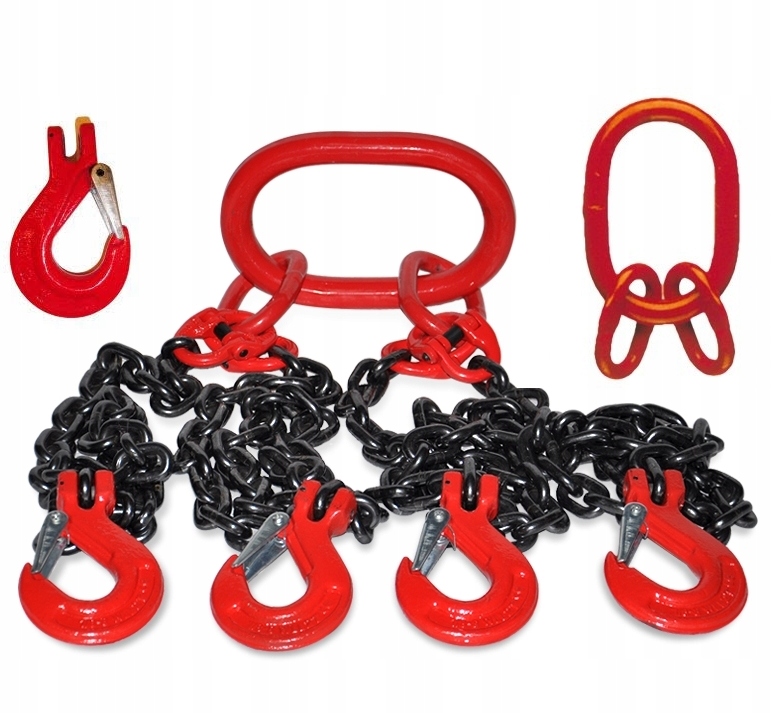 ИСПОЛНЕНИЕ: 4-х ветвевой цепной строп, изготовленный согласно PN-EN 818-4 из сертифицированных компонентов и технического цепь с пределом прочности 800 Н/мм2 /GR8/ и отвечающая требованиям Директивы по машинному оборудованию 2006/42/EC изд. Май 2006 г. Типовые испытания проводились в соответствии с методикой производителя на испытательной машине.