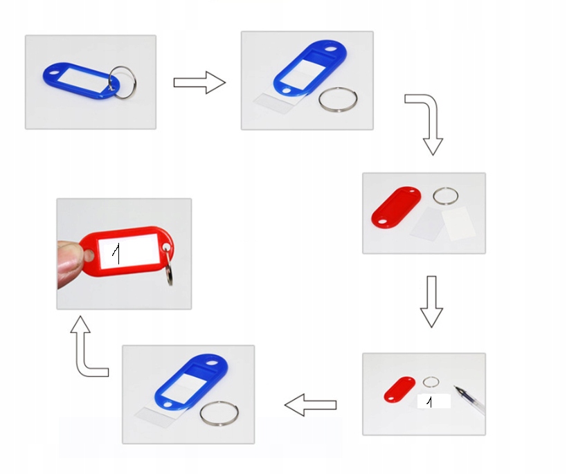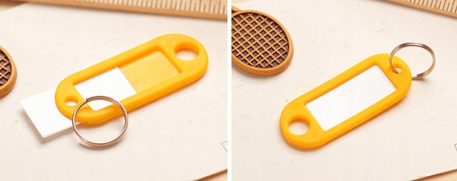 Наши брелки имеют окошко со съемной заметкой, позволяющей легко надписать ее.