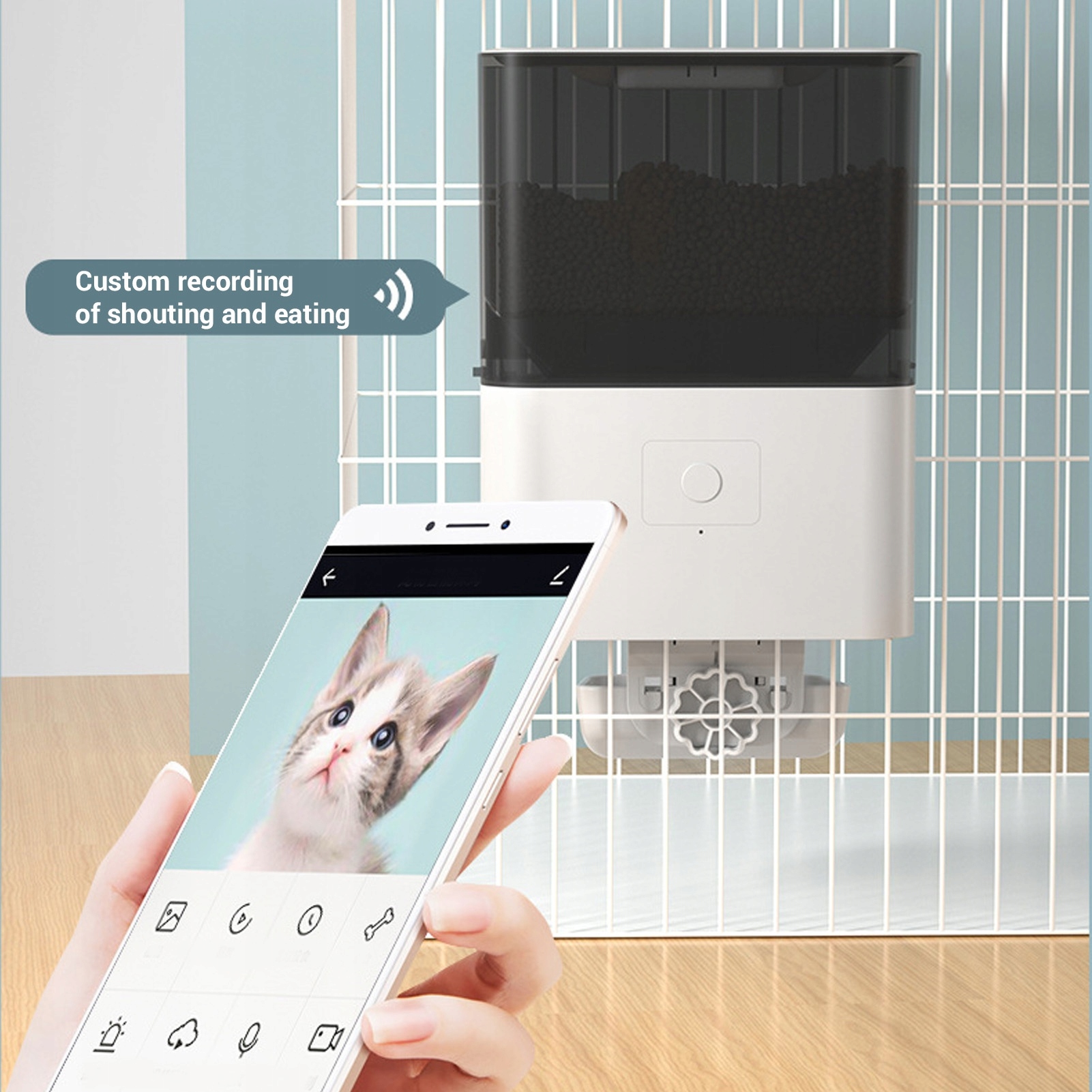 1. Интеллектуальное подключение к Wi-Fi: эта подвесная кормушка для кроликов обеспечивает интеллектуальное дистанционное управление через Wi-Fi, позволяя доставлять запланированное и порционное питание вашему питомцу в любое время и в любом месте, гарантируя, что он никогда не пропустит прием пищи.