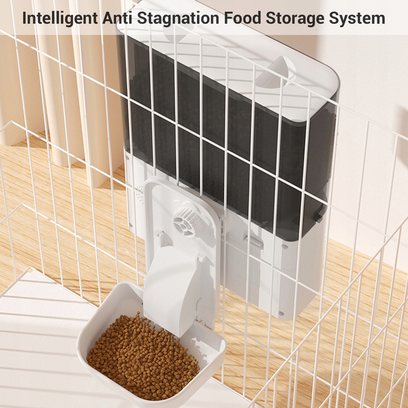 1. Интеллектуальное подключение к Wi-Fi: эта подвесная кормушка для кроликов обеспечивает интеллектуальное дистанционное управление через Wi-Fi, позволяя доставлять запланированное и порционное питание вашему питомцу в любое время и в любом месте, гарантируя, что он никогда не пропустит прием пищи.