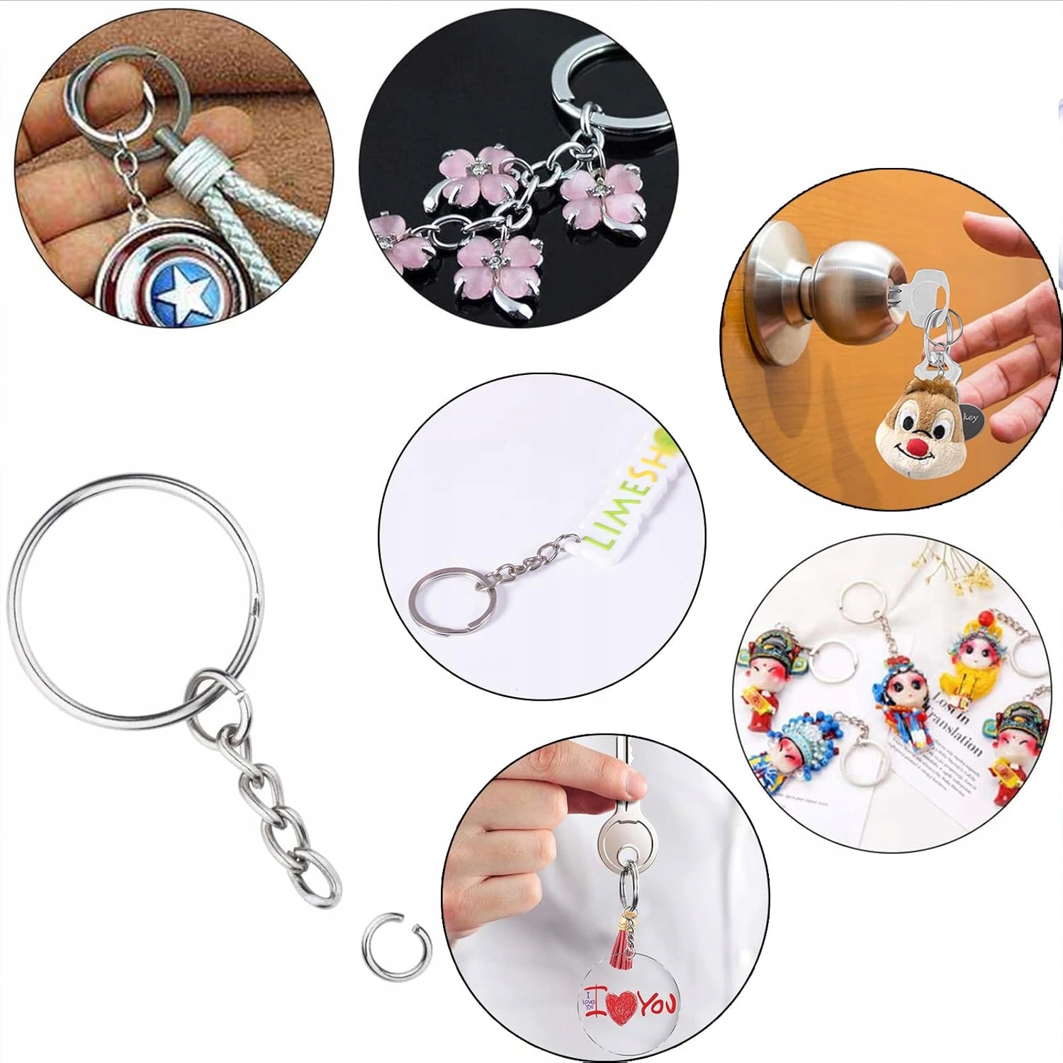 согнутые, разделенные колеса в нашем наборе доставляются открытыми, так что вы можете легко прикрепить кольцо к цепи и прикрепить клавиши, фото, кулон или колесо к клавишу колеса. Закройте круг зажима с плоскогубцами, и он готов!