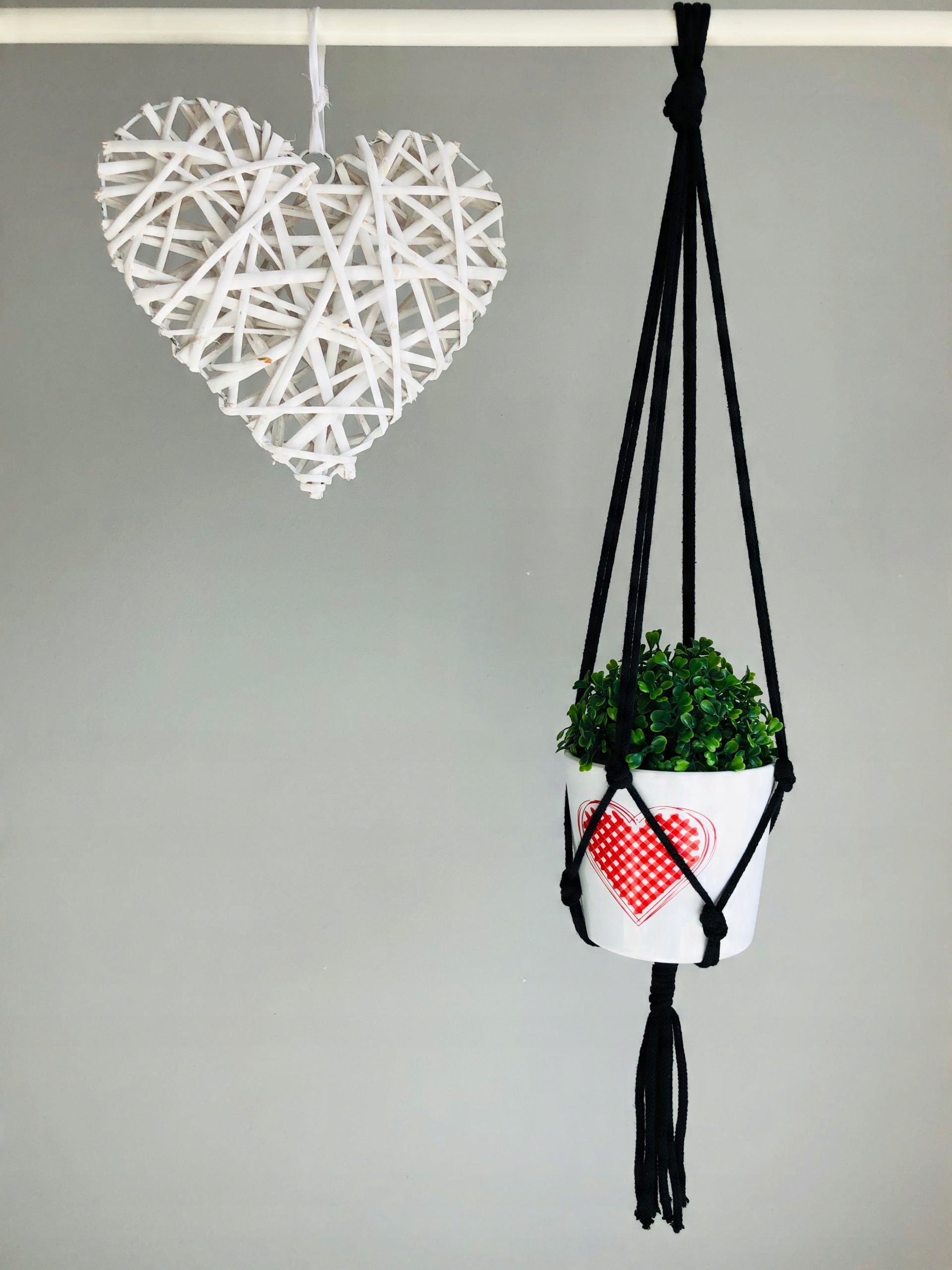 Подставку для цветов можно повесить на подцепить под потолок, на декоративный крючок у стены или повесить на деревянную палку, создавая композицию из нескольких клумб.
