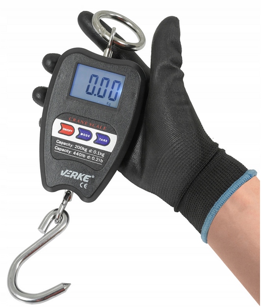 Вес крюка имеет диапазон взвешивания до 200 кг с точностью 100 г. Устройство владения и четкий ЖК -дисплей с подсветкой.