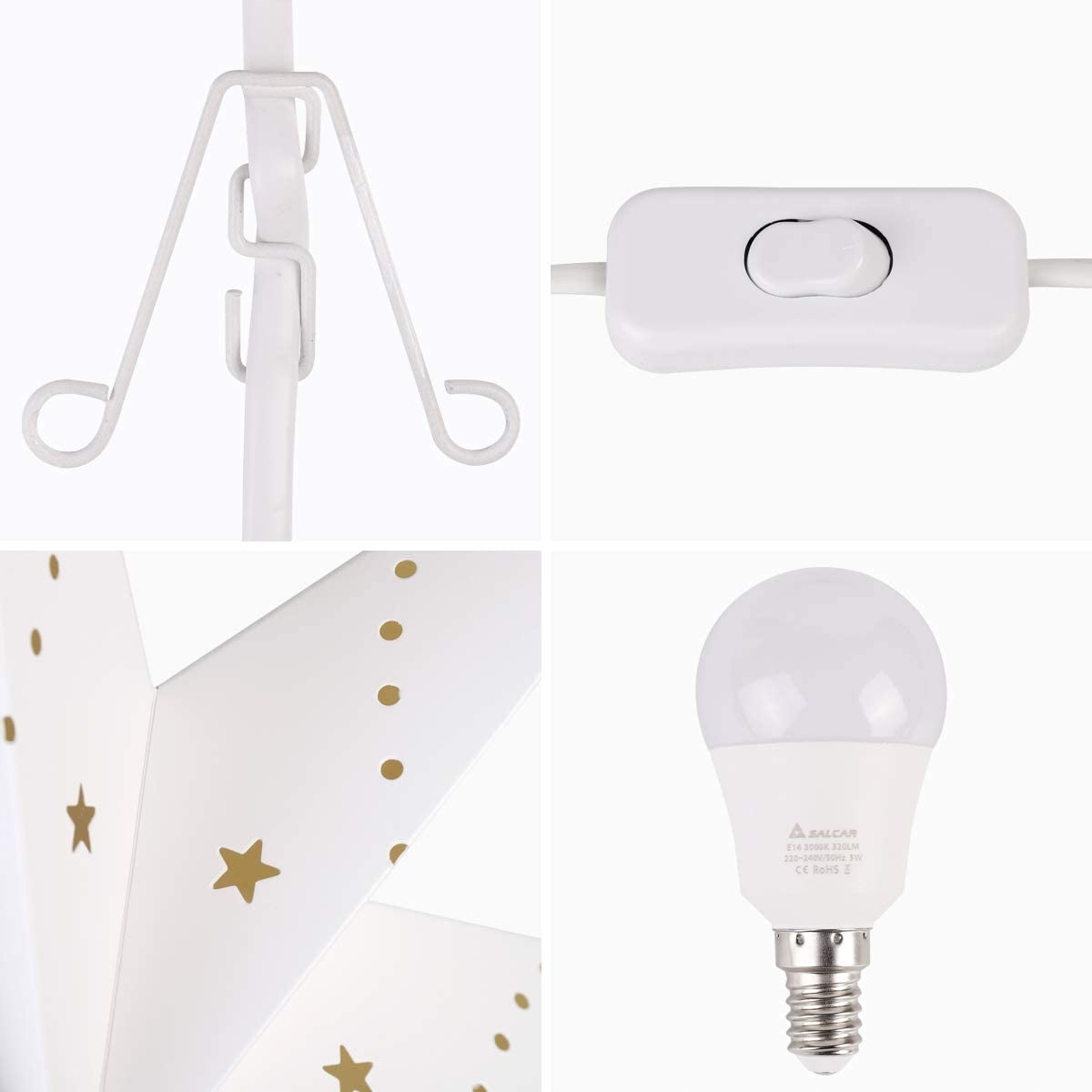 ✅ Красивая светодиодная бумажная звезда: украшение SALCAR пуансеттия с белой бумагой, 7-граничные звезды, звезда диаметром 75 см, сетевой кабель длиной 3 м с подвесным зажимом и выключателем. 4-дюймовая сменная лампа теплого белого цвета E14.
