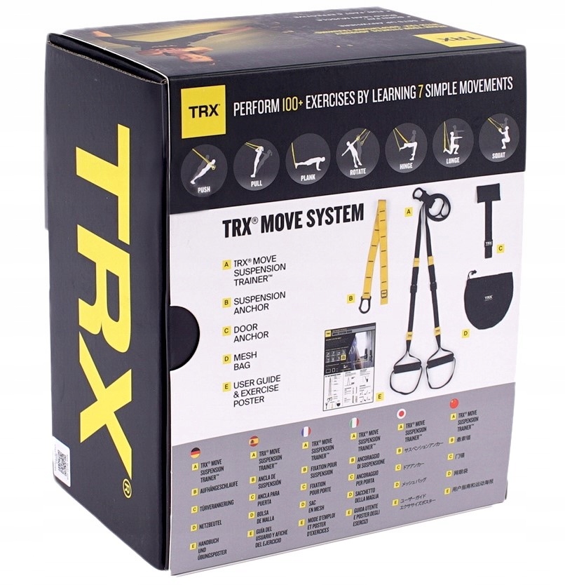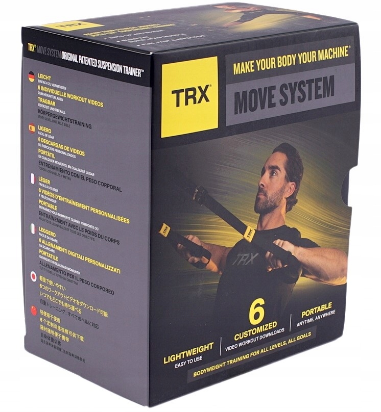 Профессиональные упражнения набор Move System бренд trx . Набор обеспечивает эффективные упражнения дома, на открытом воздухе и в спортзале. Комплект включает в себя регулируемые тренировочные ленты с ручками, а также металлический карабинер, набор для подвески набора, ручка для подвески дверной ленты, а также транспортный пакет. Кроме того, набор предлагает доступ к платформе с полезными видео материалами