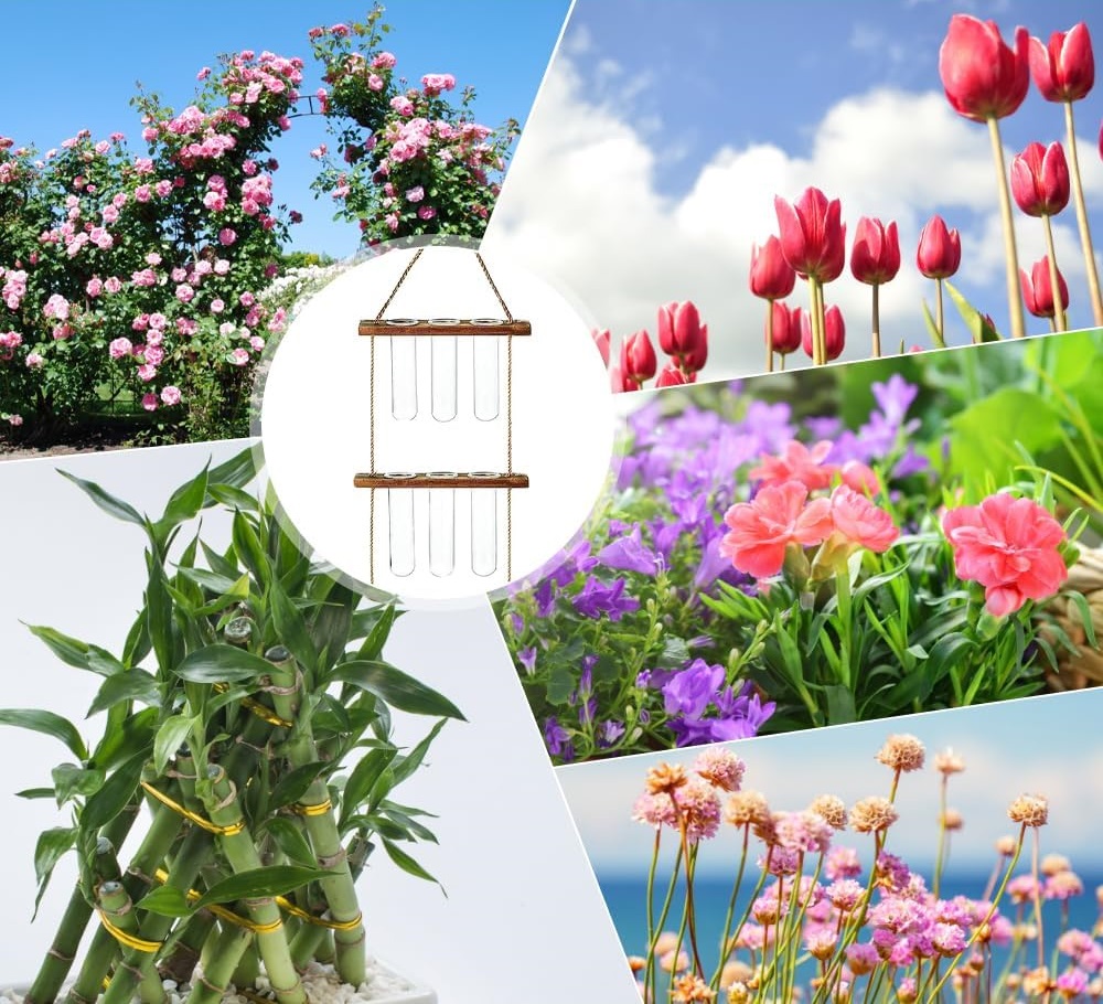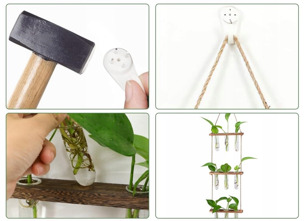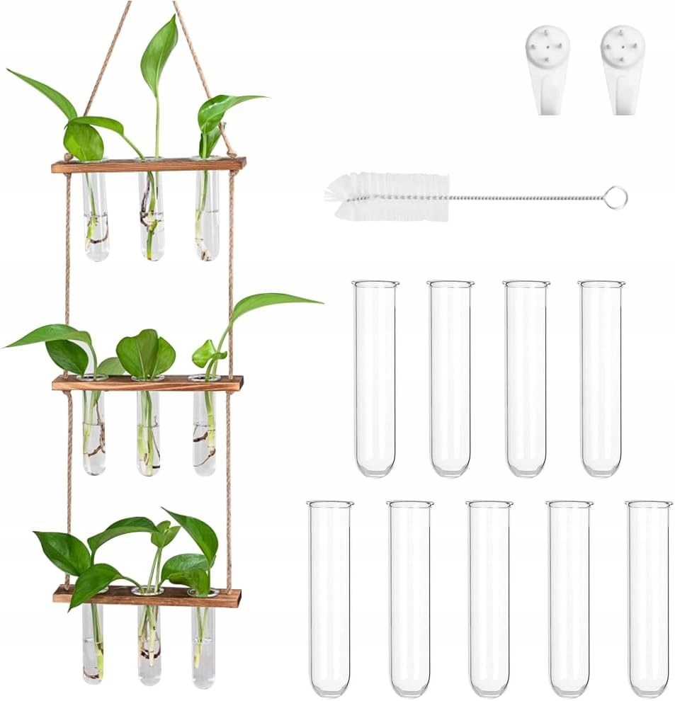 - Наша ваза для пробирок имеет подвесную трехслойную деревянную подставку. На каждом ярусе можно разместить 3 вазы, поэтому вы можете легко сажать водные растения, и дом будет полон зеленой жизненной силы. Держатель вазы имеет веревку, и его можно повесить на стена. Он красивый и не занимает места. Это отличное украшение для вашего дома.