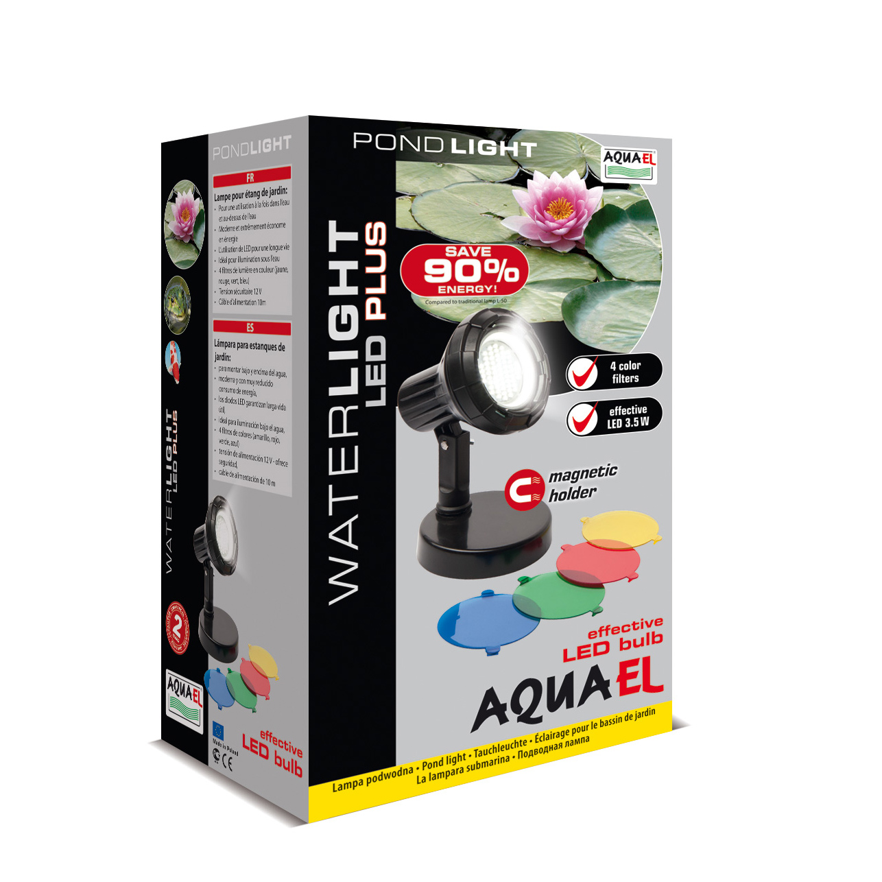 AQUAEL WATERLIGHT LED PLUS – современный светильник освещения для водоемов, использующий энергосберегающую светодиодную технологию. Он имеет форму классического прожектора, но традиционная лампочка заменена светодиодной лампой с высокопроизводительными светодиодами. Это существенно снижает энергопотребление и снижает нагрев лампы во время работы. Герметичный корпус WATERLIGHT LED PLUS позволяет использовать его как под водой, так и над водой. Светодиодная технология, использованная при производстве WATERLIGHT LED PLUS, отличается длительным сроком службы.