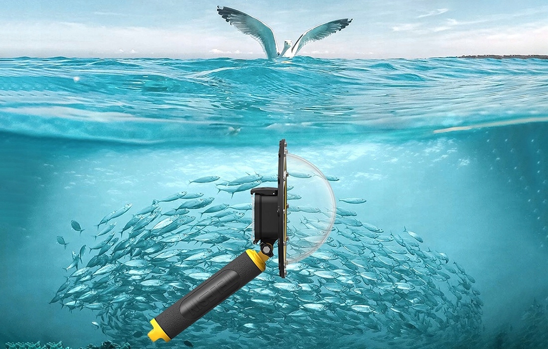 Практичный корпус Telesin, предназначенный для камеры GoPro, позволит делать оригинальные снимки над и под водой. Он может не только плавать над водой, но и водонепроницаем на глубине до 30 м. Обеспечивает широкое поле зрения и светопроницаемость 93%. Внутри нескользящей ручки также имеется отделение, в котором можно хранить мелкие предметы.