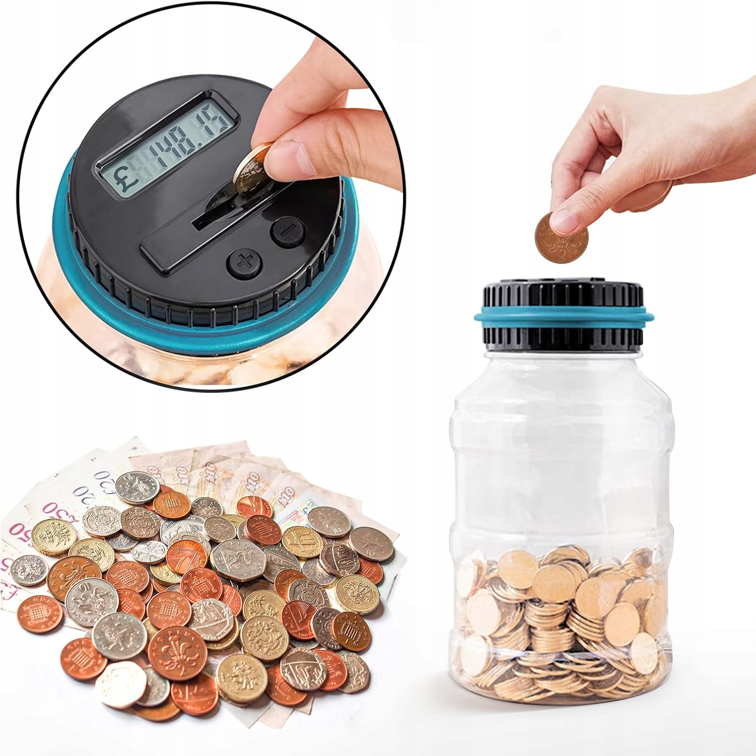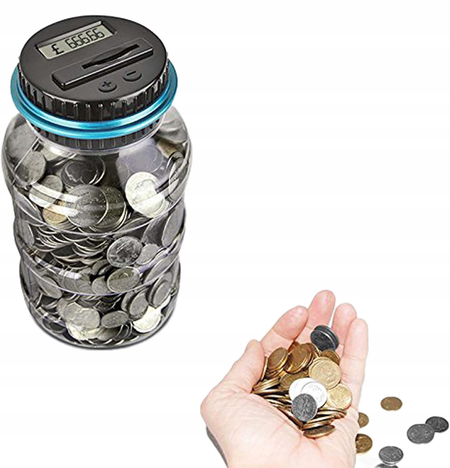 🪙🪙🪙 Тщательное подсчет: Электронный поросший банк отличает монеты различных размеров благодаря уникальной технологии распознавания. Используйте + и -баттоны, чтобы настроить отображаемая сумма после откручивания крышки и загрузки монет непосредственно в контейнер монеты.