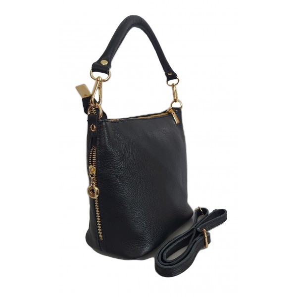PIĘKNA MIĘKKA TORBA Z WŁOSKIEJ SKÓRY NATURALNEJ - KLASYCZNA CZERŃ