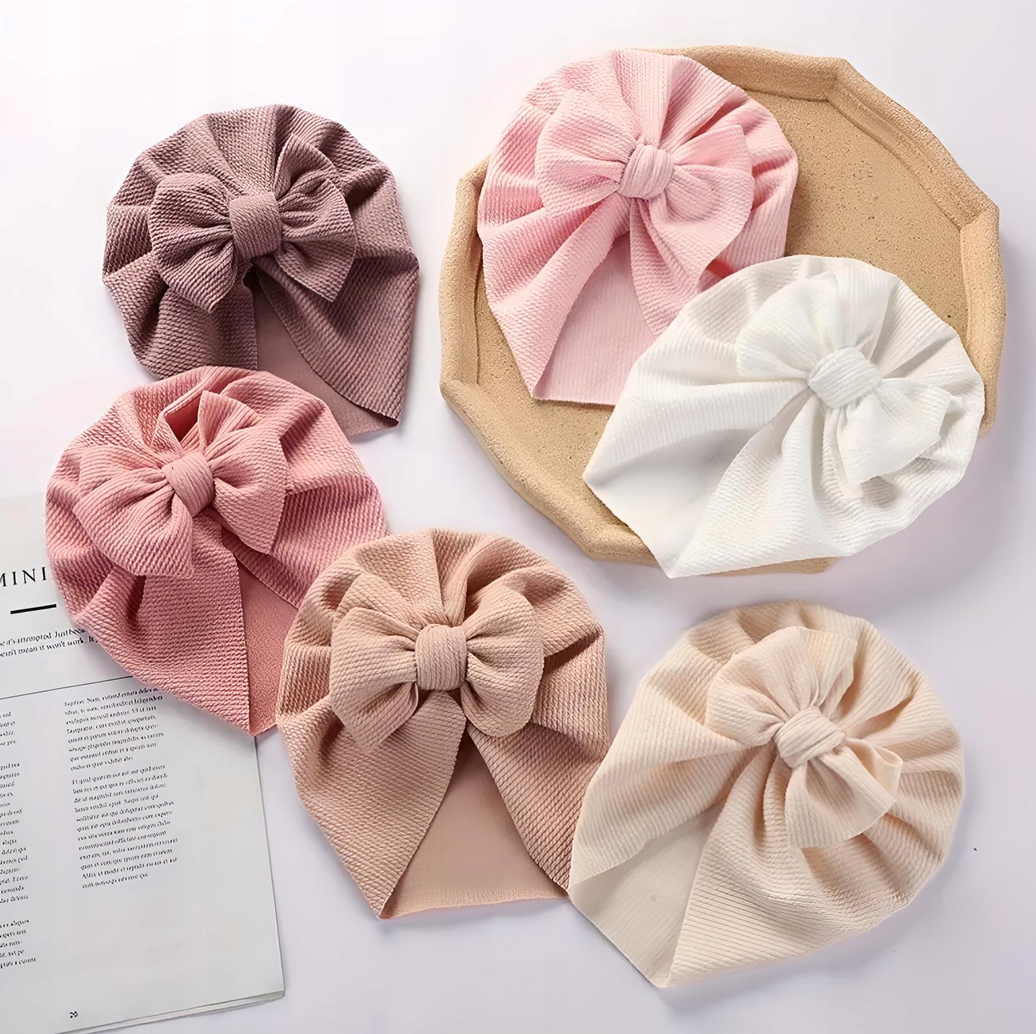 PIĘKNA RÓŻOWA CZAPKA Z DUŻĄ KOKARDĄ TURBAN RÓŻ NIEMOWLĘ WIOSNA LATO