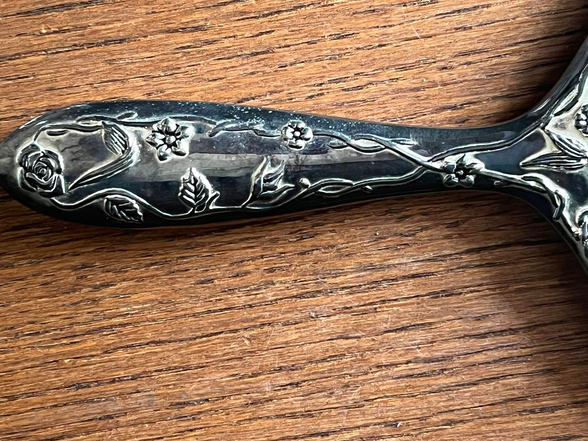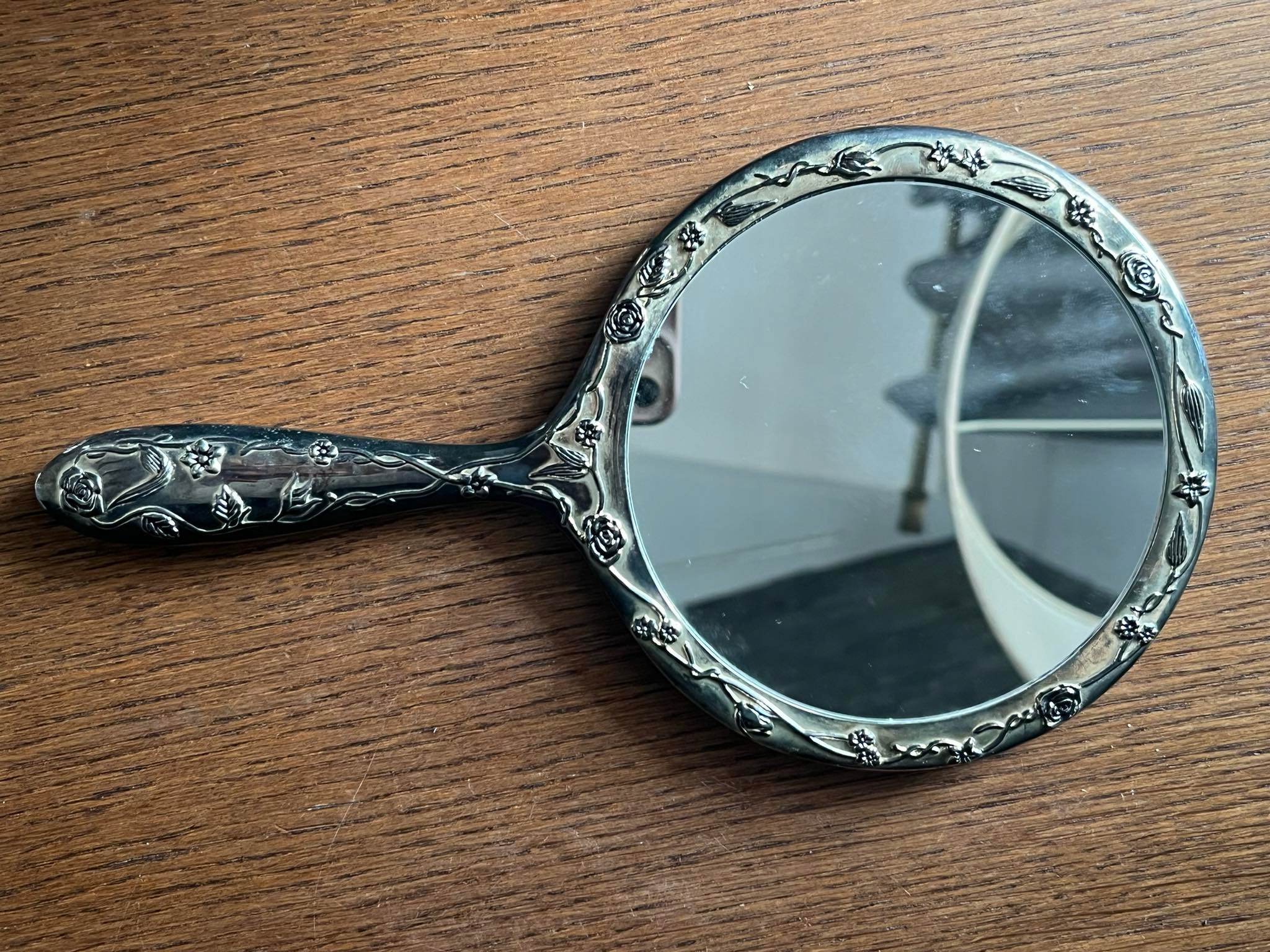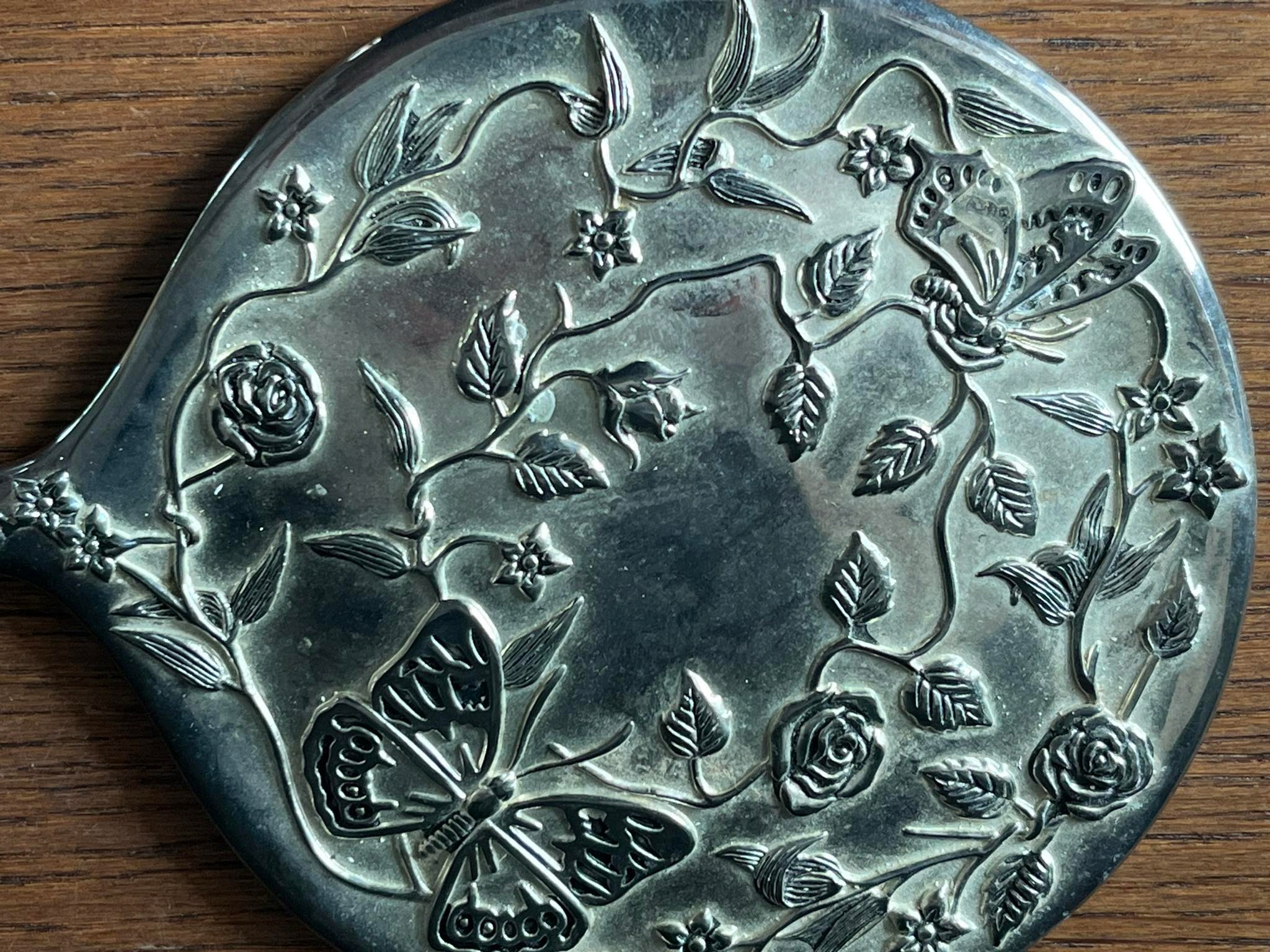 Piękne lusterko metal mosiądz grawerowane platerowane vintage