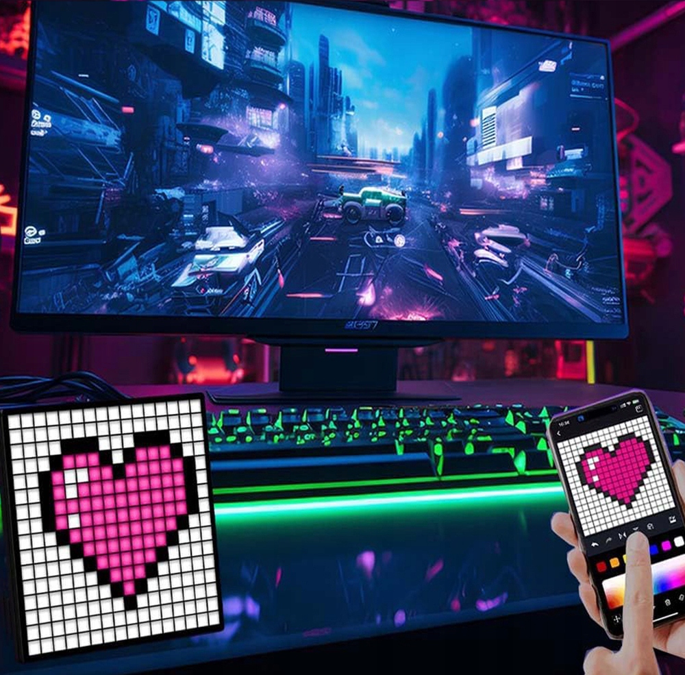 Пиксельный светодиодный дисплей Art is оснащен светодиодным дисплеем Pixel Art с высоким разрешением 16x16.Он имеет RGBподсветку с 16 миллионами цветов. Его можно использовать для световой панели RGB, аксессуаров для игровых столов, цифрового будильника и других сцен.