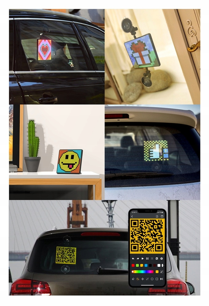 Pixoo Max — это многофункциональный графический дисплей со встроенным светодиодным экраном, который позволяет создавать анимацию, отображать любимые изображения или общаться с другими водителями на дороге.
