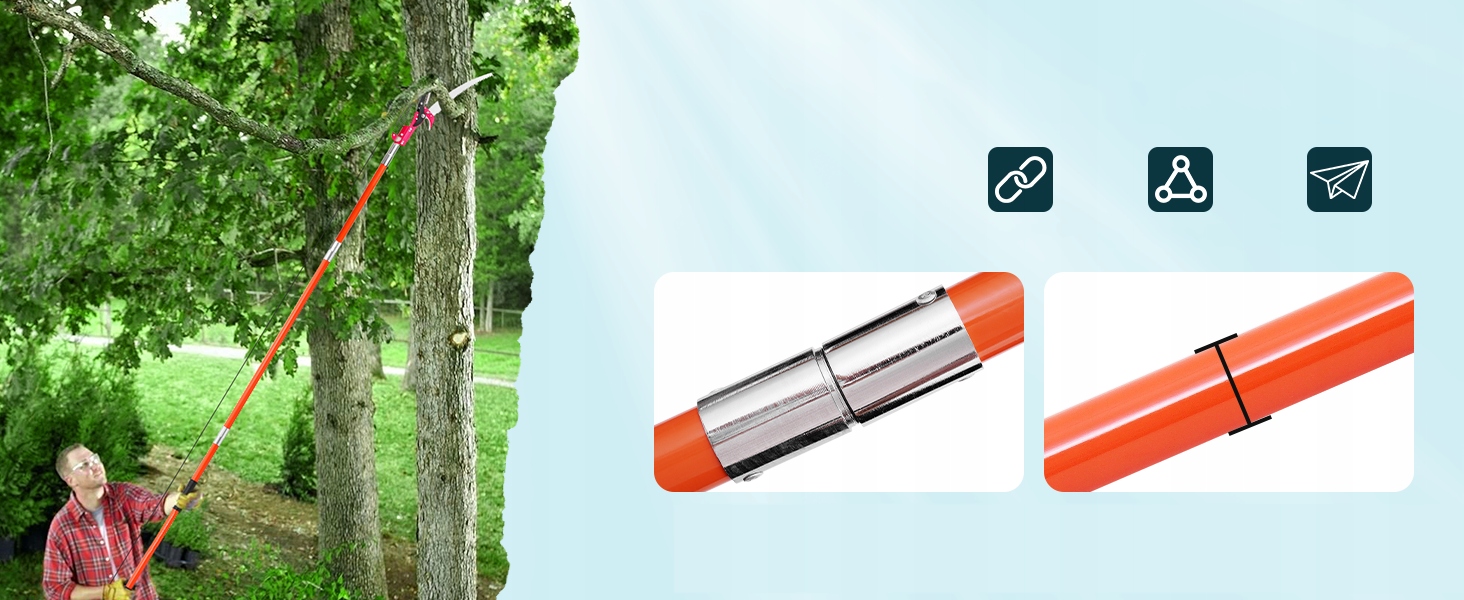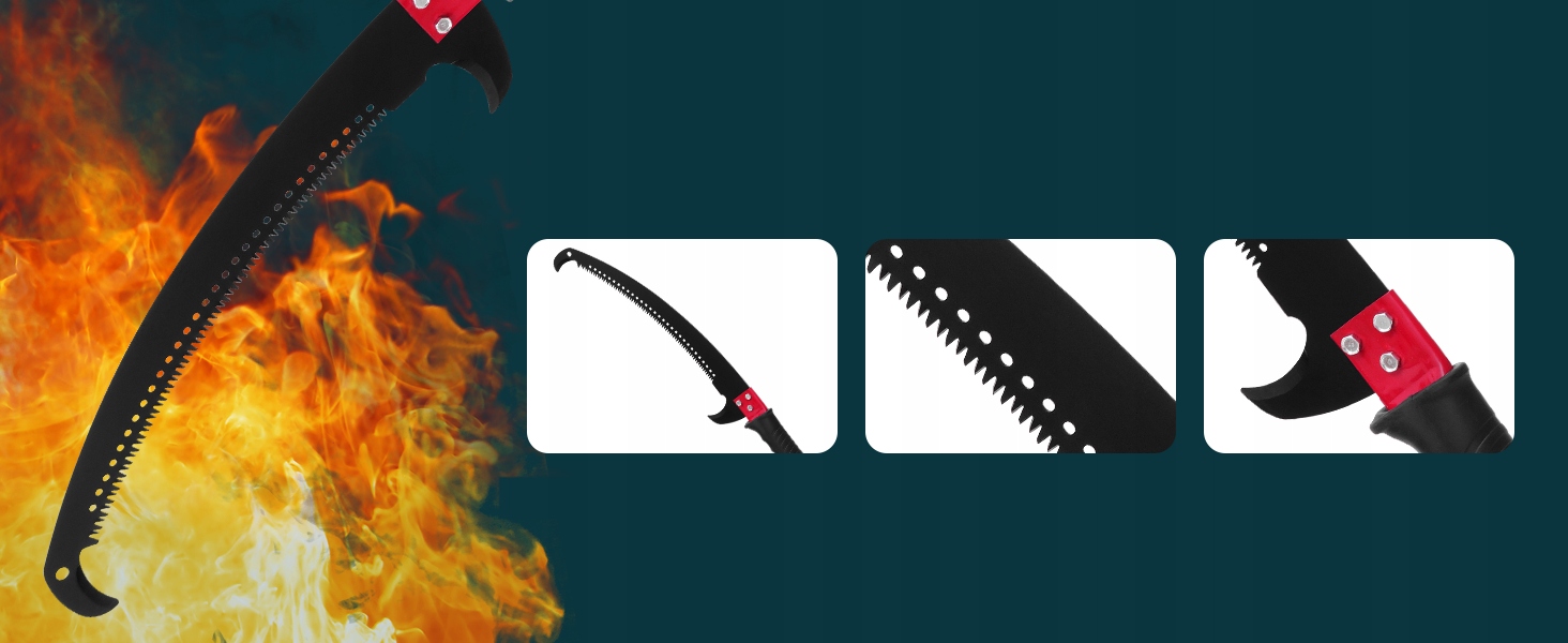 Лезвия изготовлены из углеродной стали SK5 и улучшенного антикоррозионного покрытия. Они долговечны. Лезвия оснащены 3-градусными заземляющими зубами, поэтому они могут быстро разрезать ветви, чистить и плавно. Верхний нож в форме крючка удаляет ветви во время прятки, в то время как нож в нижнем крючке удаляет запертые ветви во время резки и обрезки, что значительно повышая эффективность работы.