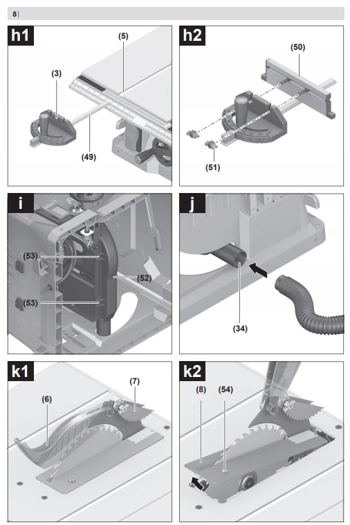 - (1) Масштаб расстояния пильного полотна до параллельного хода