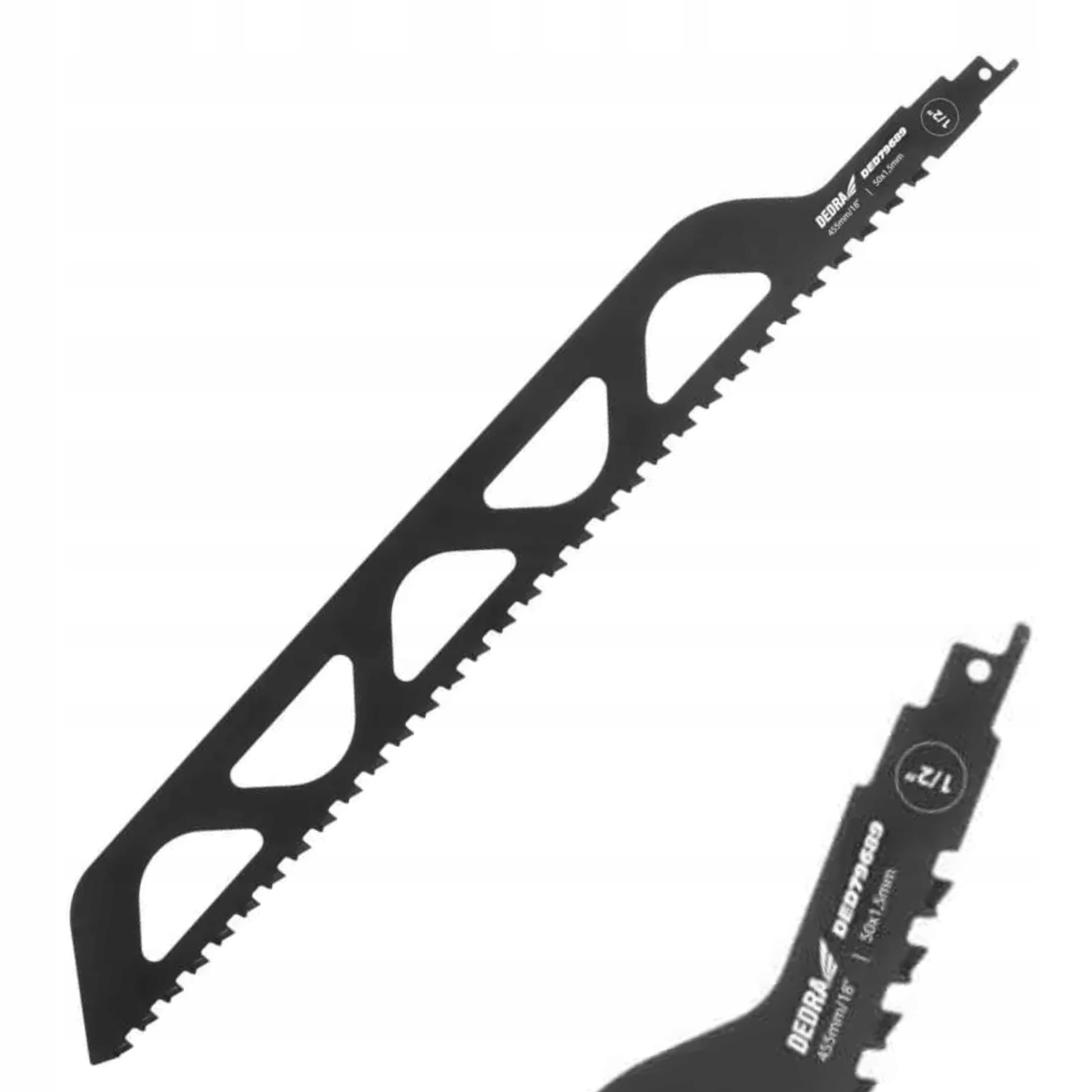 Полотно предназначено для сабельных пил со стандартной ручкой 1/2". Используется для резки таких материалов, как: газобетон, кирпич, силикатный блок или кладочный раствор. Полотно пилы изготовлено из стали и имеет зубья из карбида вольфрама, что делает резку быстрой и точной.Длина пильного полотна 455 мм.