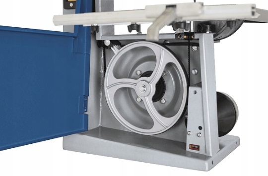 - Верхняя направляющая режущей ленты регулируется по вертикали с помощью стойки
