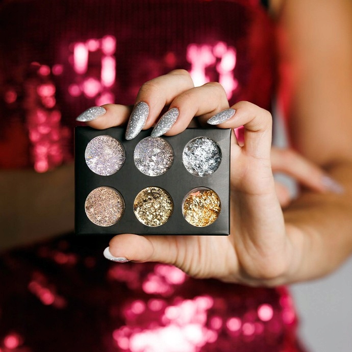 Pure Glamour Box Glitter Set - 6 увлекательных банок , заполненные до краев различными эффектами блеска и вспышки. Набор гибридных украшений для ногтей позволит вам создавать стилизации, полные фестивального образа, идеально подходит для вечерних творений и для новогоднего и гвоздичного периода. Набор включает в себя, среди прочего, золотые и серебряные хлопья, золотой густой блеск для ногтей, гибридную пыльцу с блестками с частицами блестящего блеска. Ногти - парчаные ногти h1>