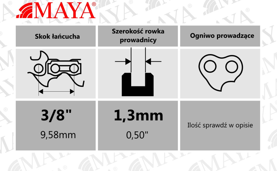 Чтобы подобрать цепь для вашей модели пилы, посчитайте направляющие звенья -> это тот элемент пильной цепи, который входит в направляющую канавку. Кроме того, проверьте шаг цепи и толщину направляющего звена.