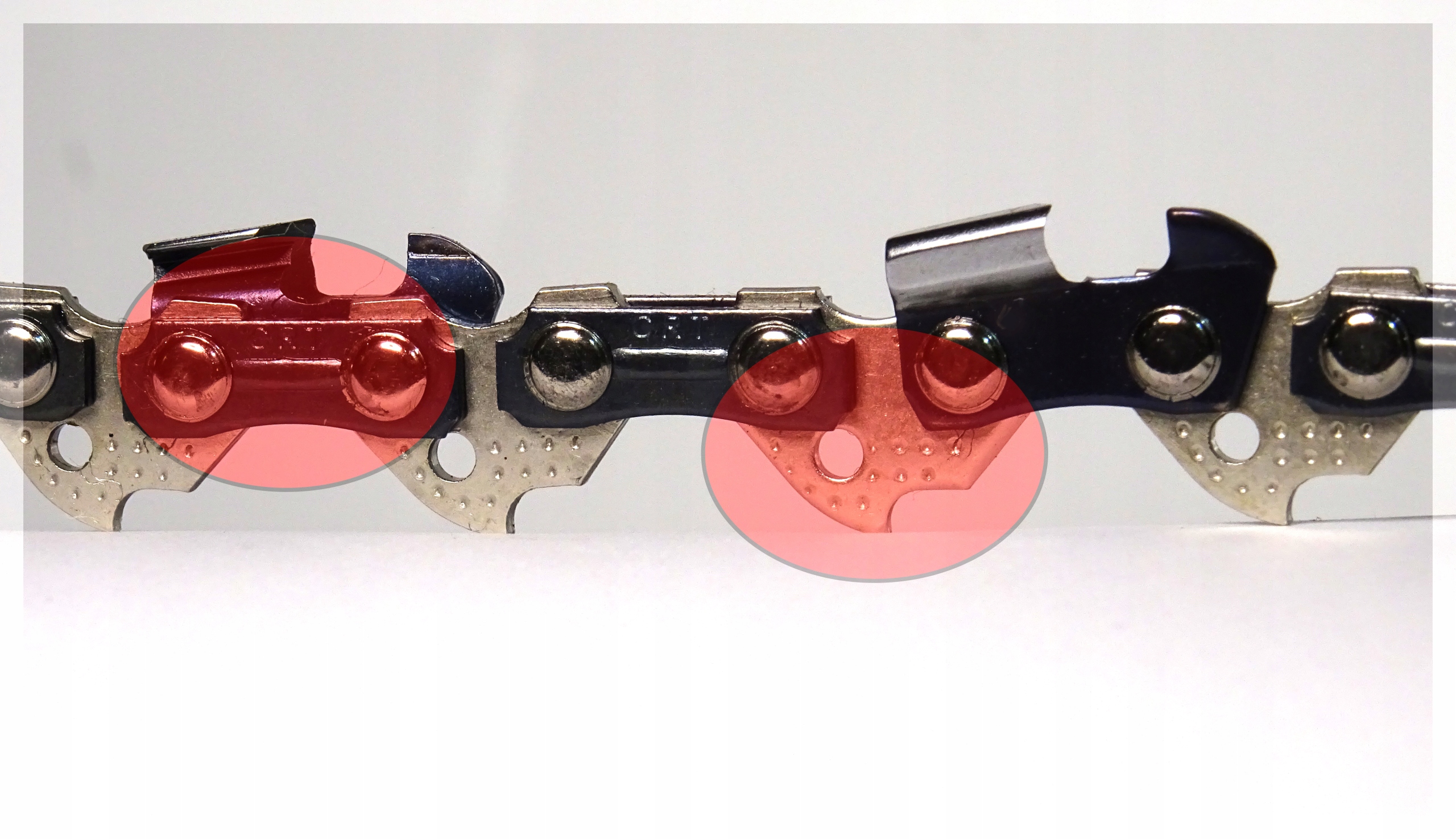 Благодаря специальному тиснению в соединительных звеньях и отверстиям в направляющих звеньях смазочное масло равномерно распределяется по всей режущей системе. Решение эффективно снижает трение, предотвращает растяжение цепи, снижает потребляемую мощность пилы и, как следствие, снижает расход топлива.