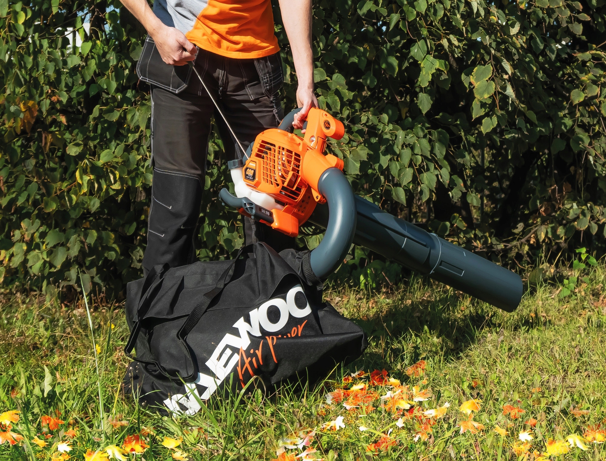 Пылесос с воздуходувкой используется для выдувания и сбора садового мусора, например, сухих листьев или травы.