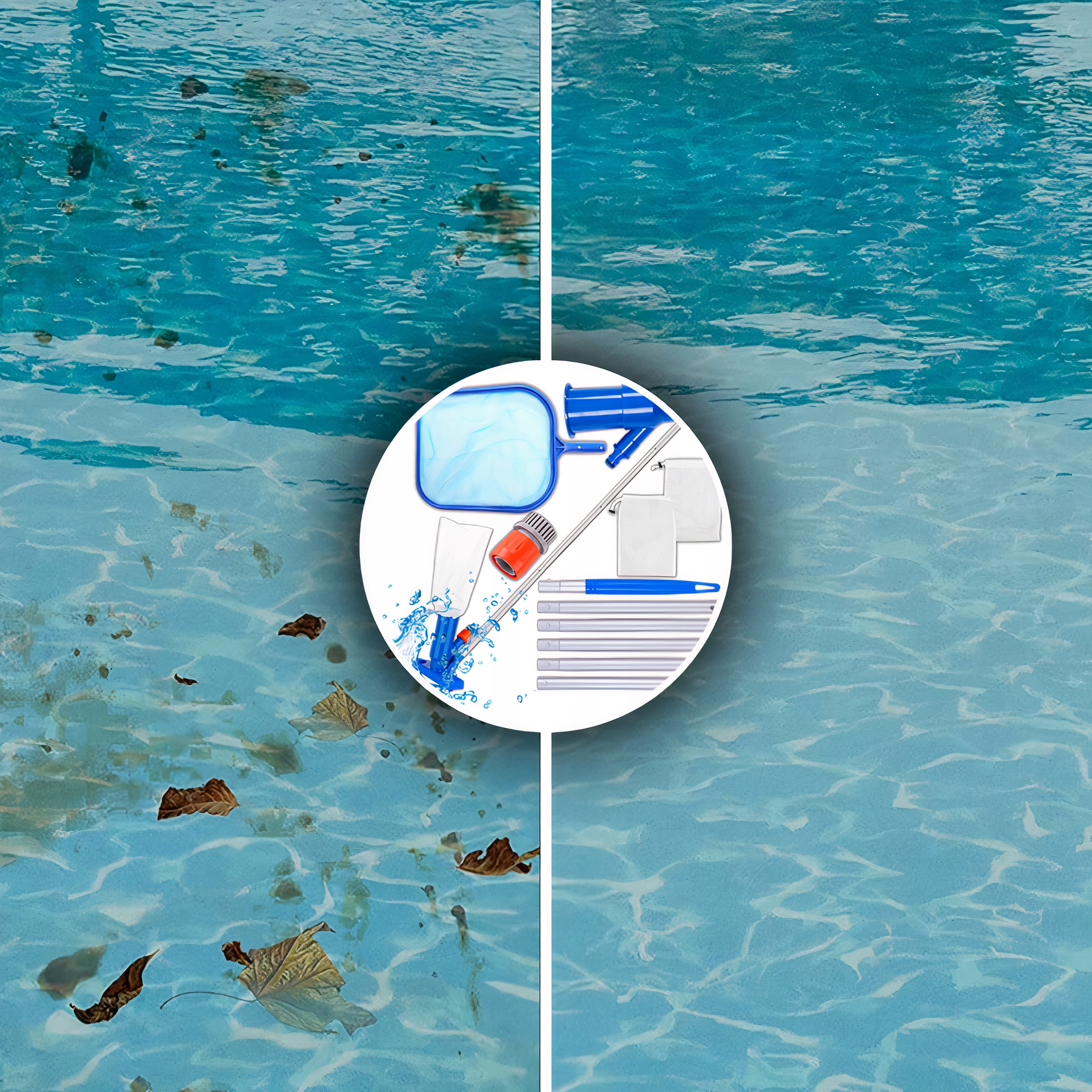 - 2 в 1 – один комплект, но две практичные функции. В комплект входит сетка для удаления крупных загрязнений с поверхности воды бассейна и водяной пылесос для дна бассейна.