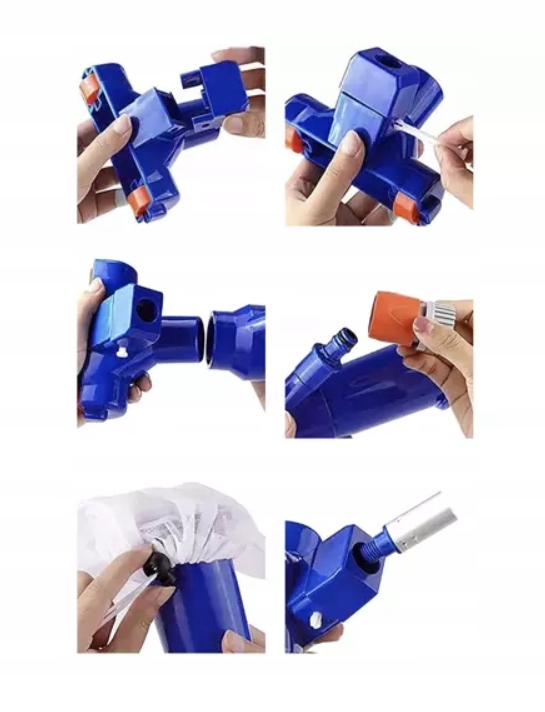 - ОЧЕНЬ ПРОСТО В ЭКСПЛУАТАЦИИ — просто подсоедините водяной шланг к быстроразъемному разъему и включите воду. Устройство под действием давления всасывает воду и грязь, вода вытекает, а грязь остается в мешке.