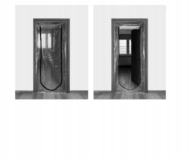 Отрегулируйте штору на дверь, а затем обклейте ее скотчем.Прикрепите штору таким образом, чтобы застежка-молния, обтянутая пленкой, была со стороны пыльного воздуха.