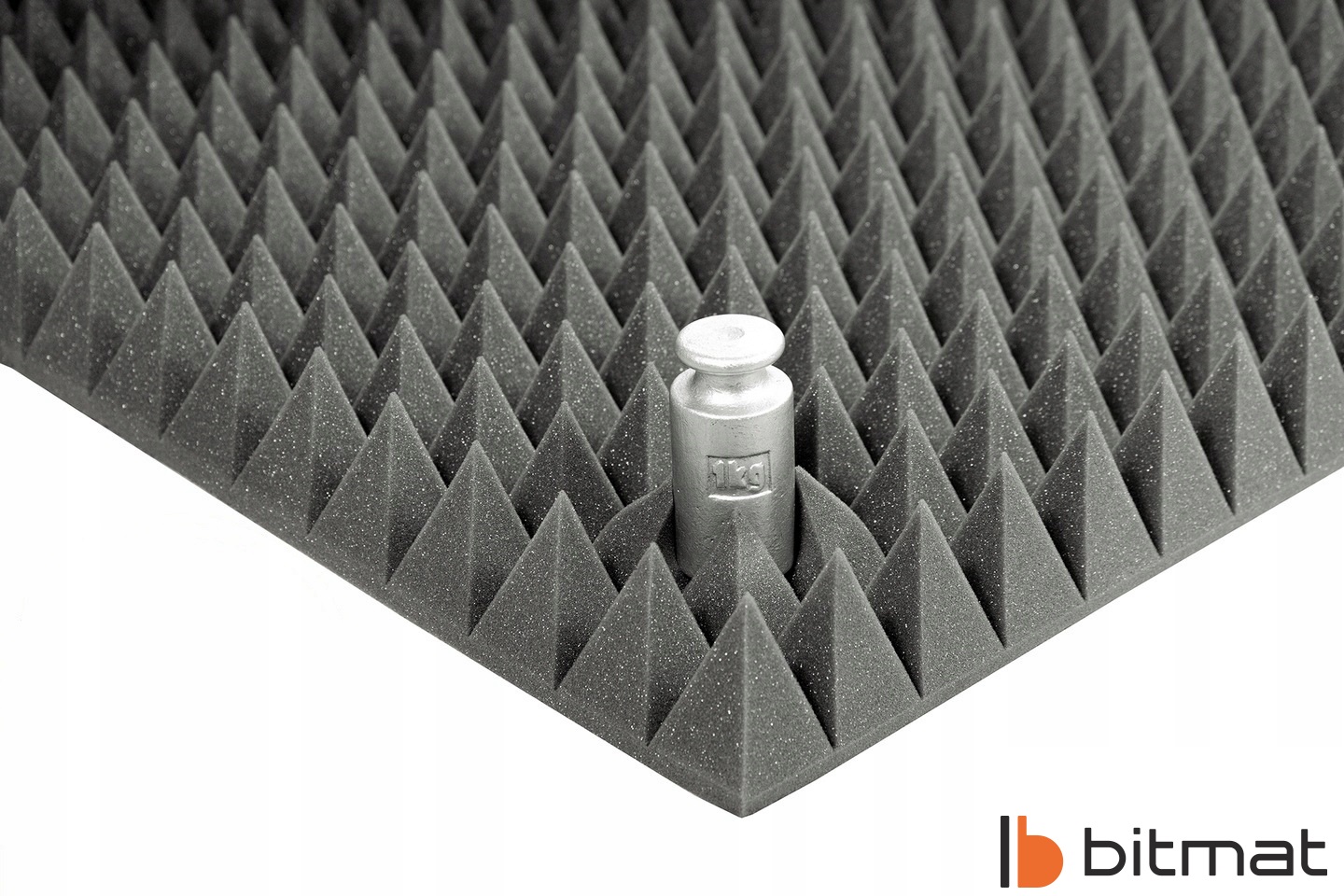 Профилированная акустическая пена PIRAMIDKA 4 см без клея от Bitmat – основной способ улучшения акустики б> в гостиных, офисах или репетиционных залах и защита от нежелательных отражений звука. Структура пены с открытыми порами предназначена для поглощения и рассеивания звуковых волн, тем самым устраняя эхо и сокращая время реверберации. Помимо своих акустических свойств, он также предлагает привлекательный внешний вид, который подойдет для большинства помещений.
