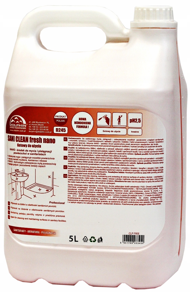 Dolphin Sani Clean Fresh Nano – текущая чистка душевых кабин, сантехники, настенной плитки.