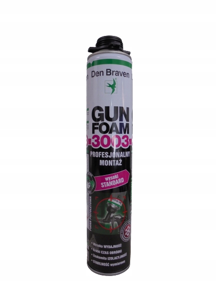 Den Braven Gun Foam 3003 — однокомпонентная полиуретановая пистолетная пена для профессионального монтажа окон и дверей.