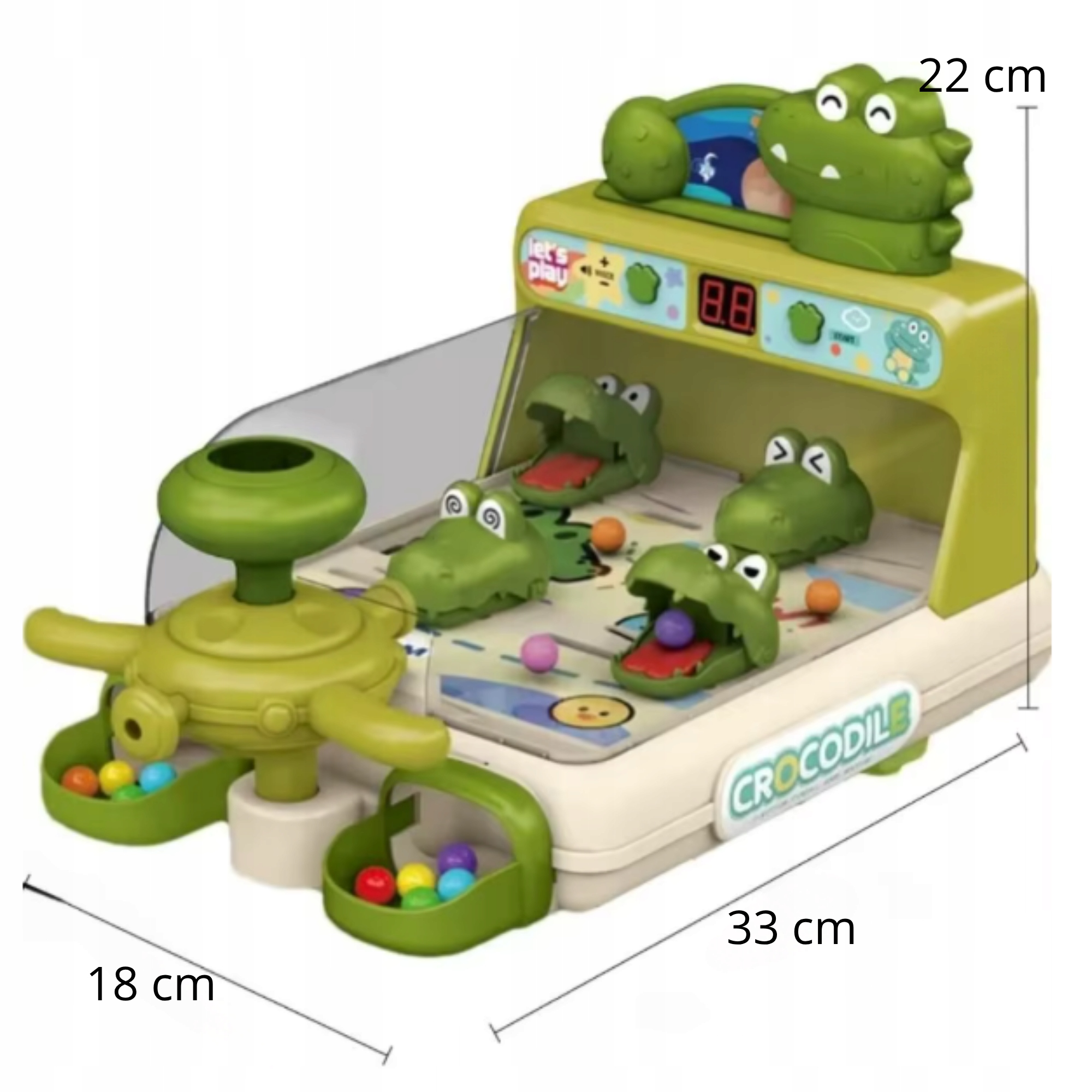 ⭐Правила просты: вы должны попасть в первого крокодила цветным шариком, чтобы набрать очки! Удар спереди дает +1 очко, сзади +2 очка. После 15 раундов игра автоматически сбрасывает счет и начинает новый уровень, побуждая ребенка продолжить игру. Счетчик очков и звуки делают каждый раунд захватывающим, а самые маленькие чувствуют себя так, будто попали в настоящую аркадную игру!