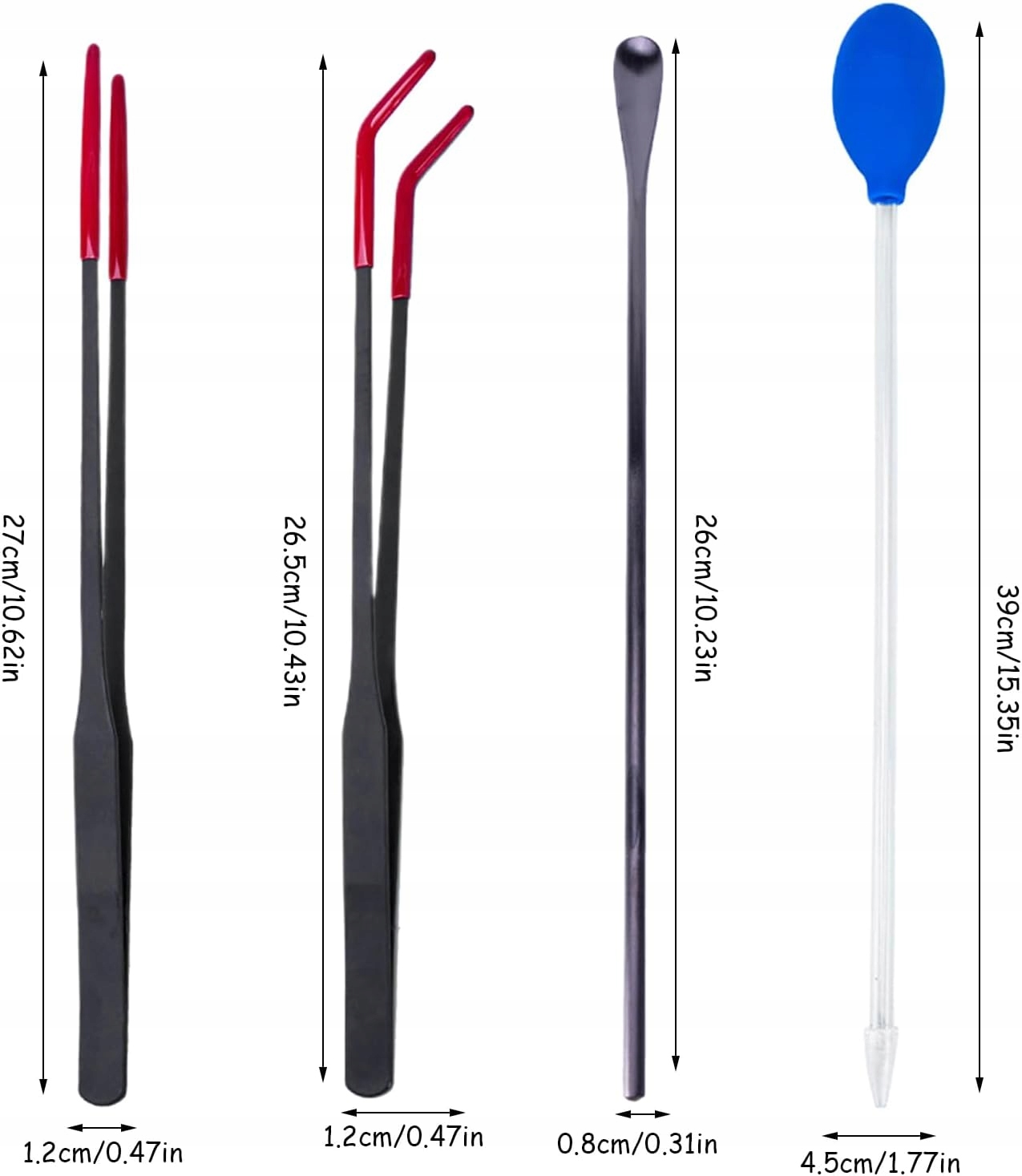 Многофункциональный набор для кормления: этот набор включает в себя полный набор инструментов, в том числе ложку-капельницу и удлиненный пинцет простой изогнутой формы. Этот набор удовлетворяет разнообразные потребности в кормлении рептилий, одновременно эффективно упрощая процесс.