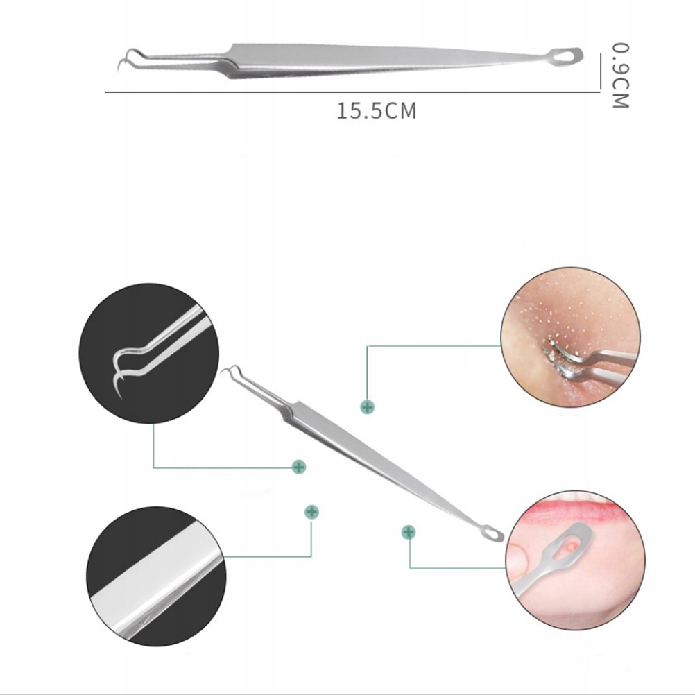 ПИНЦЕТ С ДВОЙНЫМ КРЮЧКОМ, ИГЛА НЕРЖАВЕЮЩАЯ СТАЛЬ, ЧЕРНЫЙ, ЧЕРНЫЙ КЛИПС ДЛЯ УДАЛЕНИЯ Прыщей