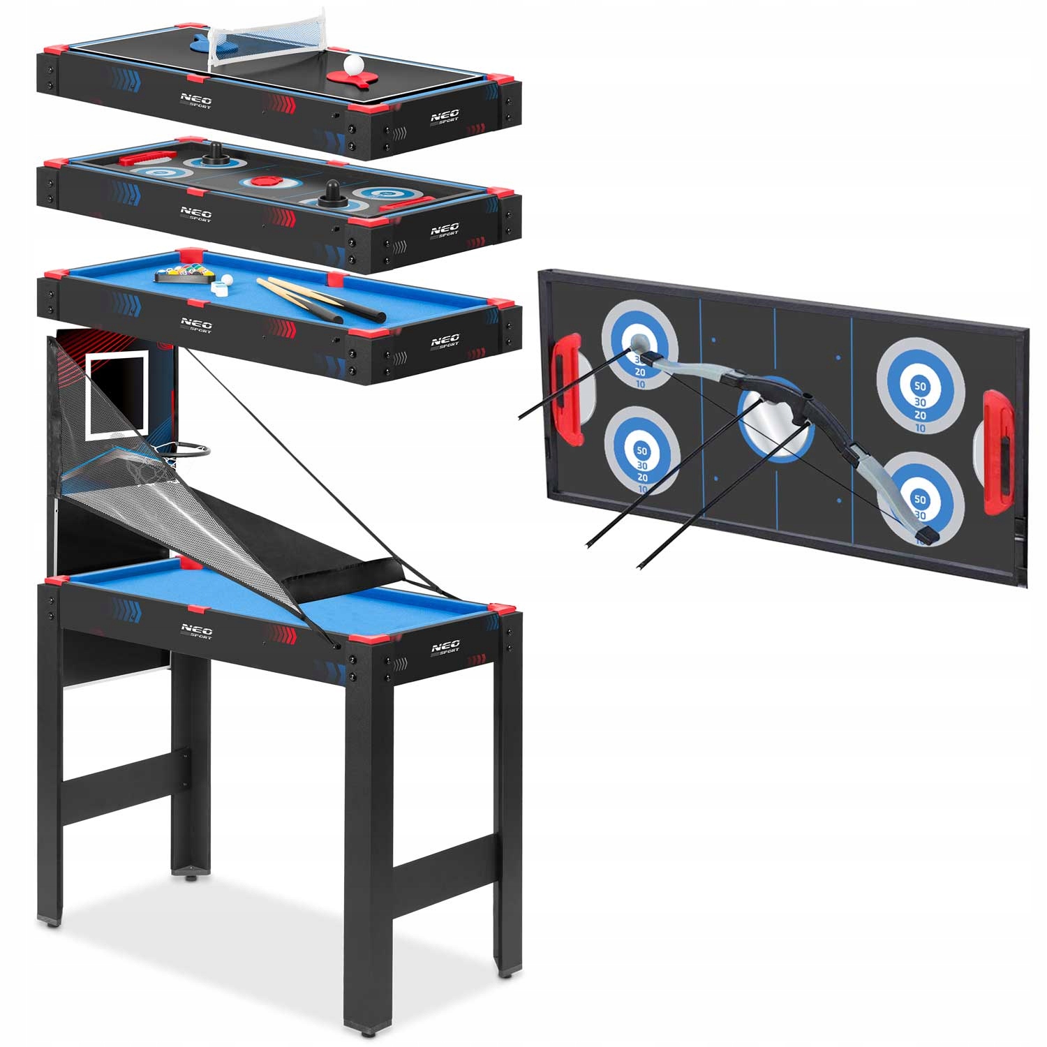 Игровой стол выводит развлечения на новый уровень! Помимо увлекательных матчей, вы сможете попробовать свои силы в стрельбе по мишени из лука и стрел.
